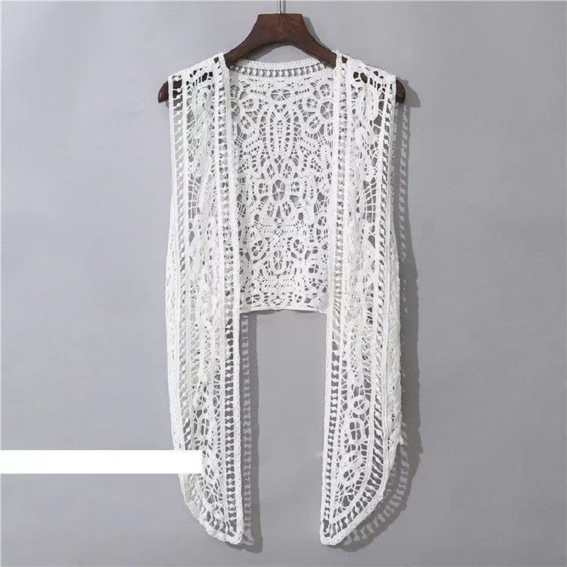 레이스 크로 셰 뜨개질 작은 조끼 여자의 여름 블랙 짧은 민소매 니트 카디건 조끼 얇은 조끼