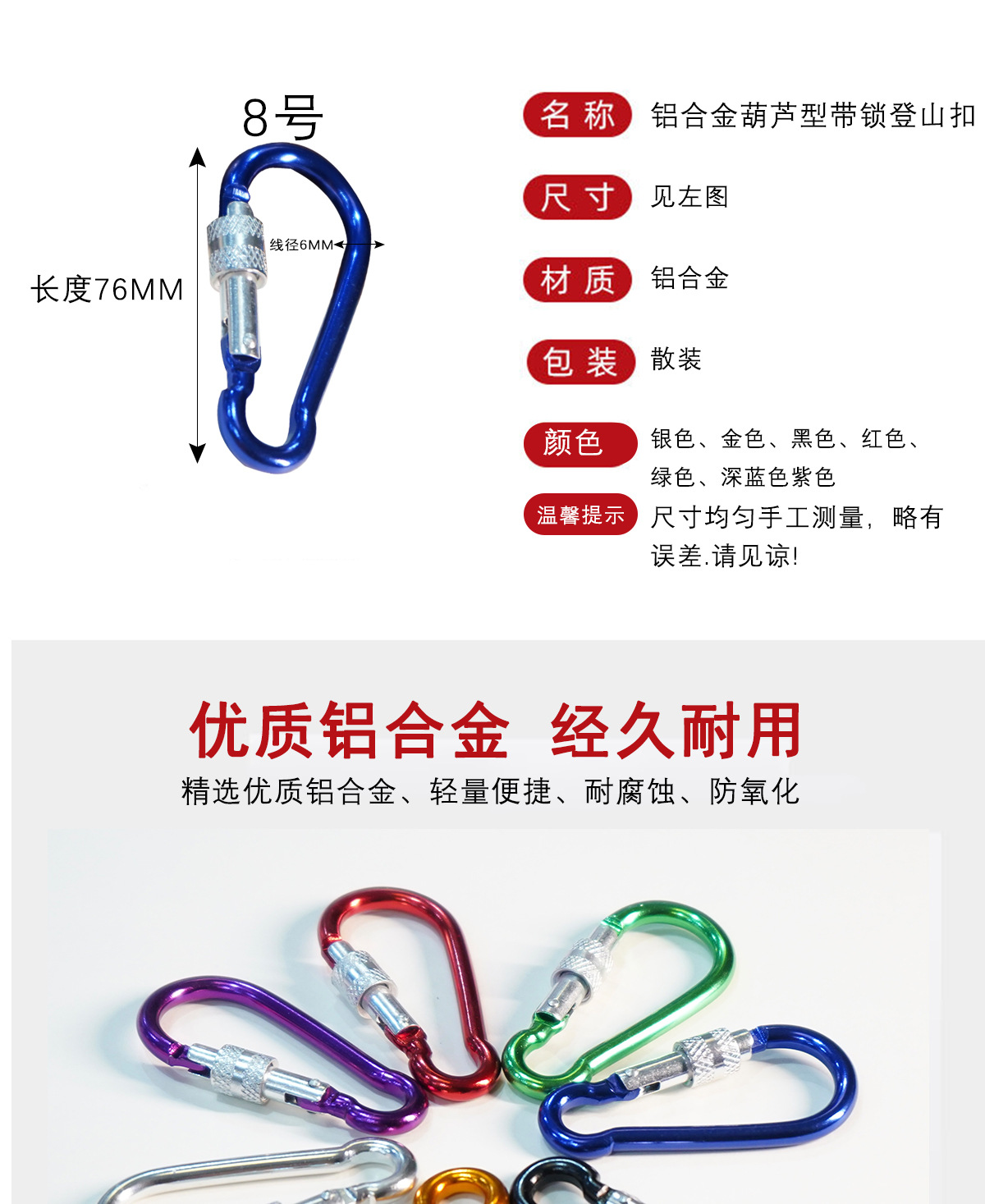 공장 도매 8 번 조롱박 형 알루미늄 합금 카라비너 잠금 야외 장비 등산 버클 야외 주전자 버클