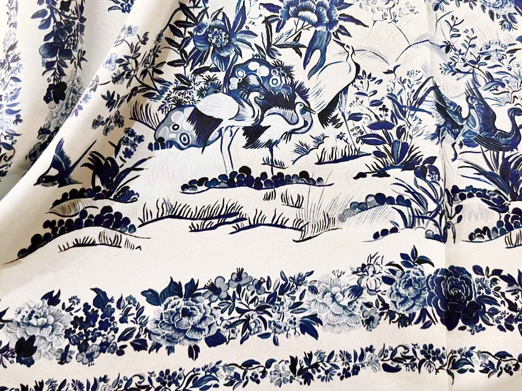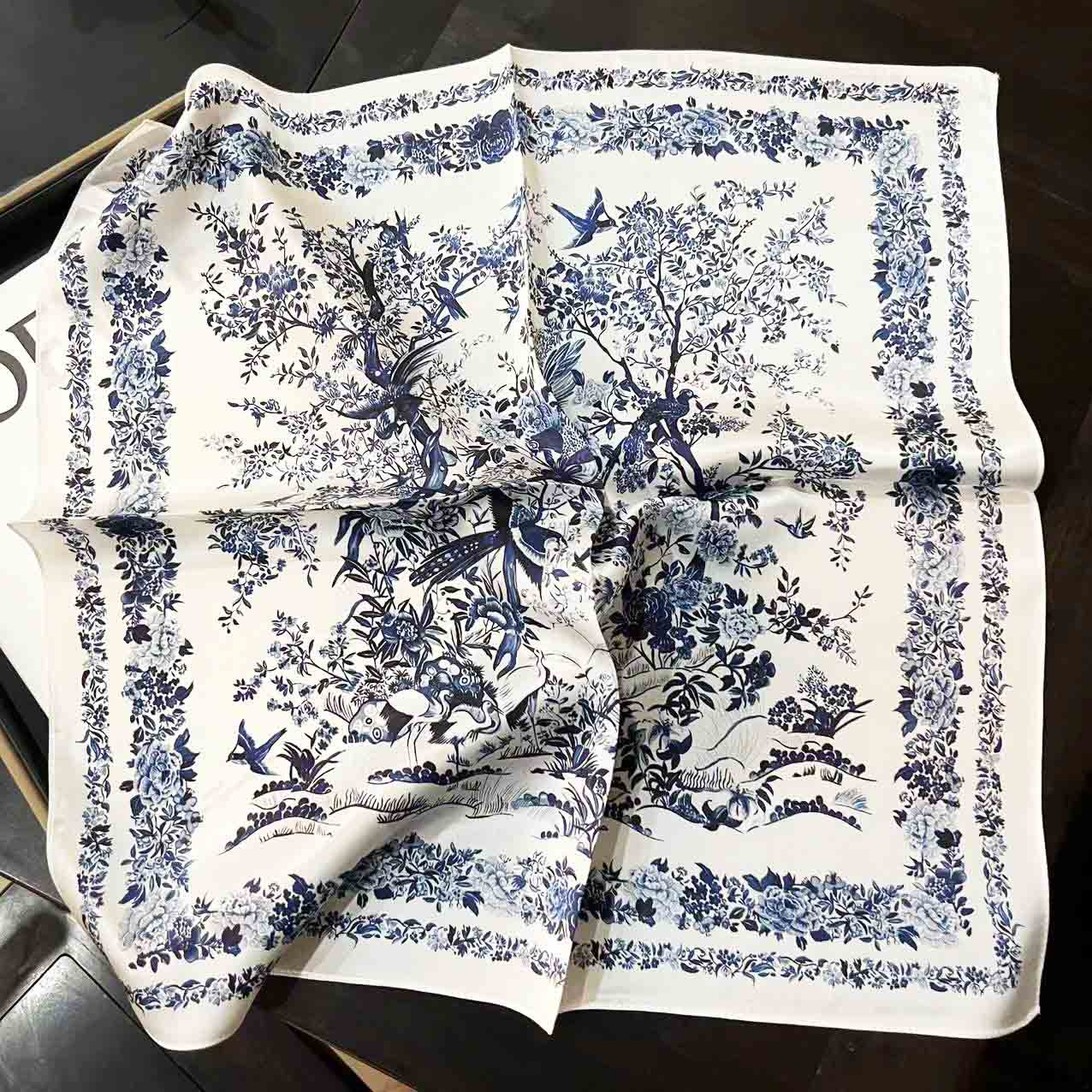 차갑고 치어없는 복고풍 파란색과 흰색 도자기 파란색 장식 실크 스카프 셔츠 선물이있는 여성용 다목적 뽕나무 실크 작은 스카프스토어 가기