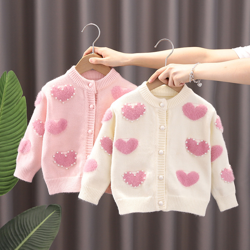 여아 스웨터 카디건 2023 가을과 겨울 아기의 니트 스웨터 코트 사랑 외국 스타일 탑 여아 스웨터 코트스토어 가기