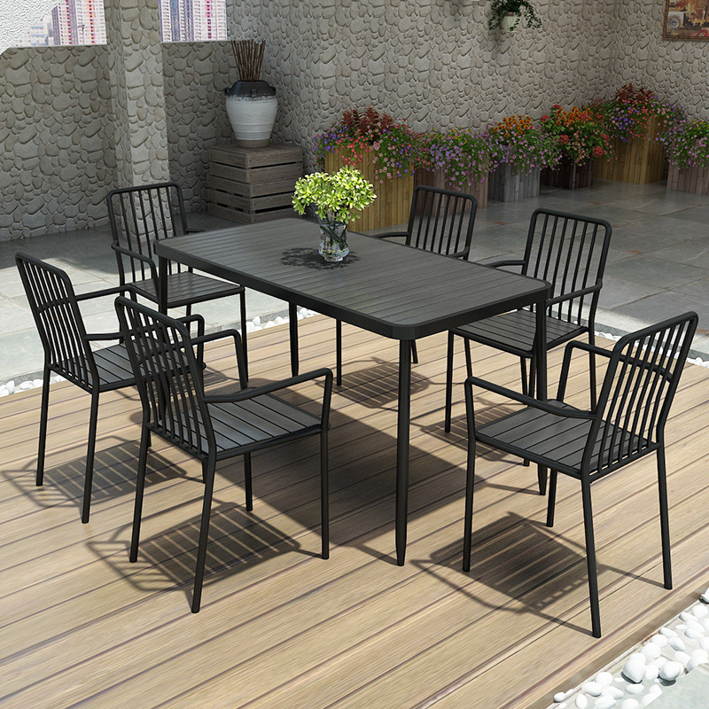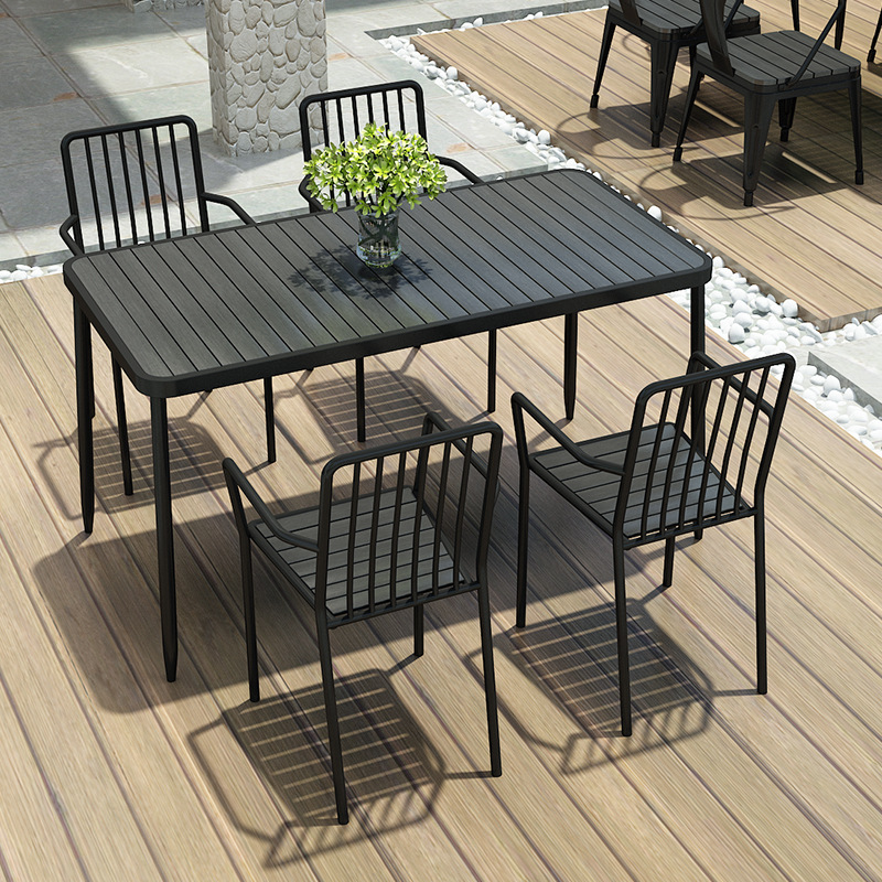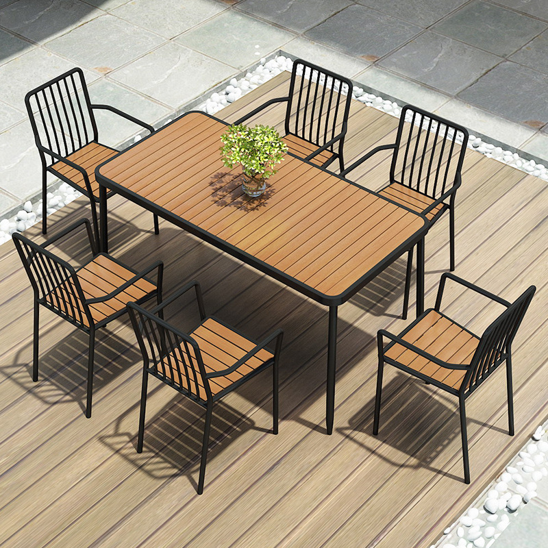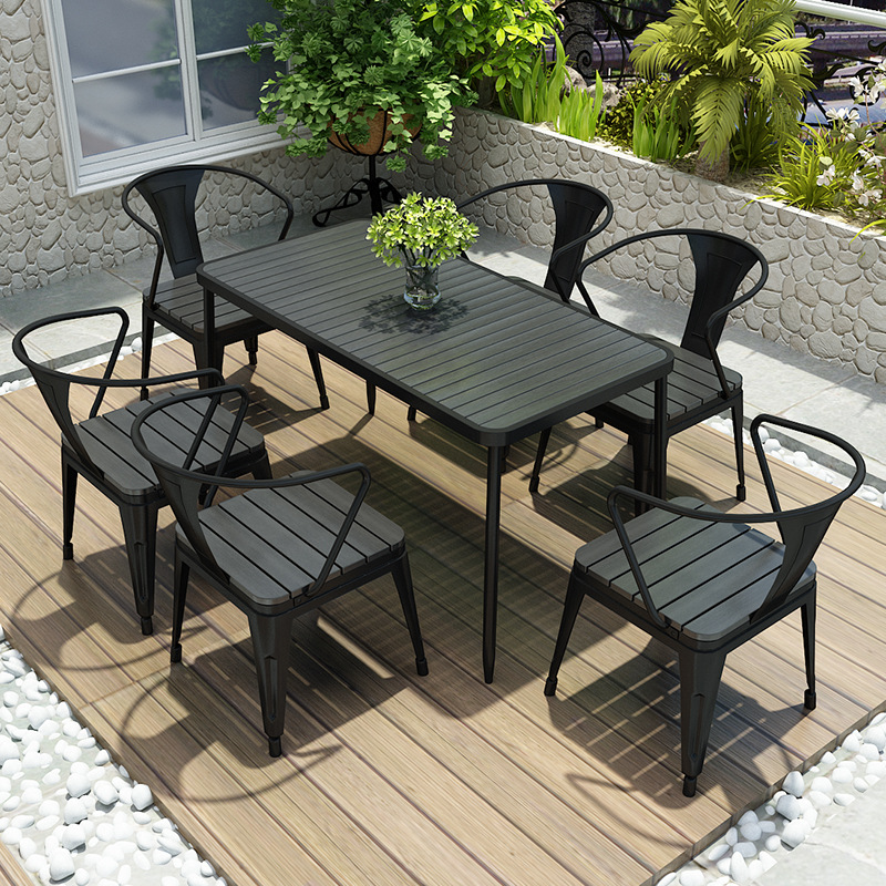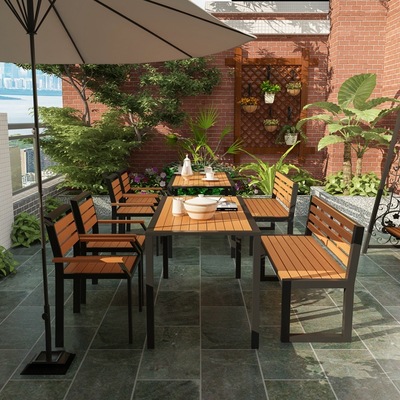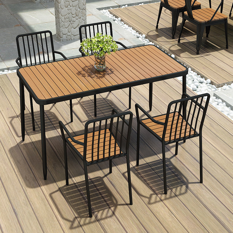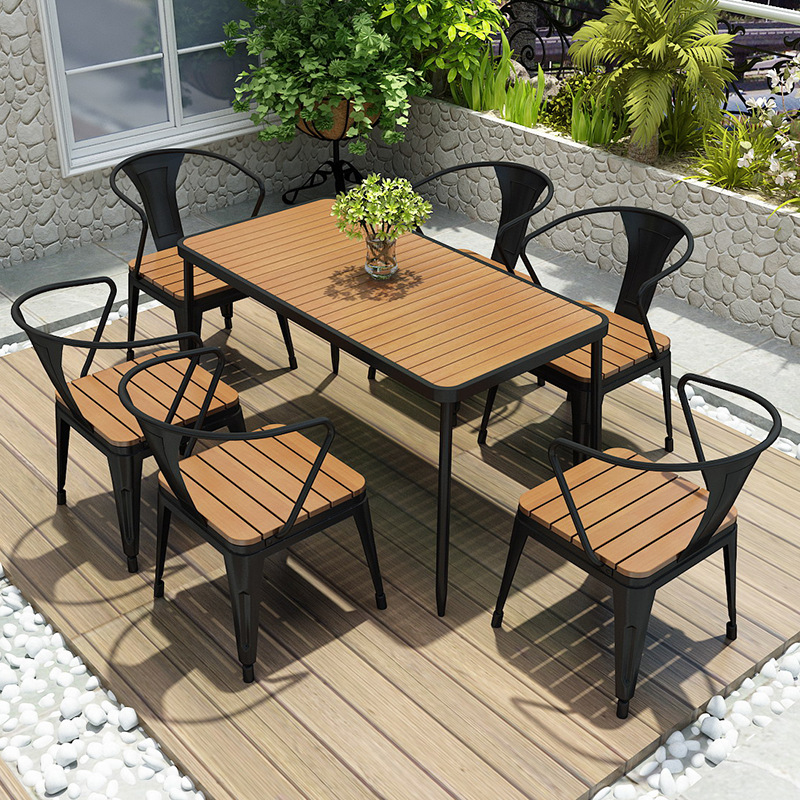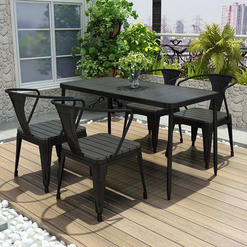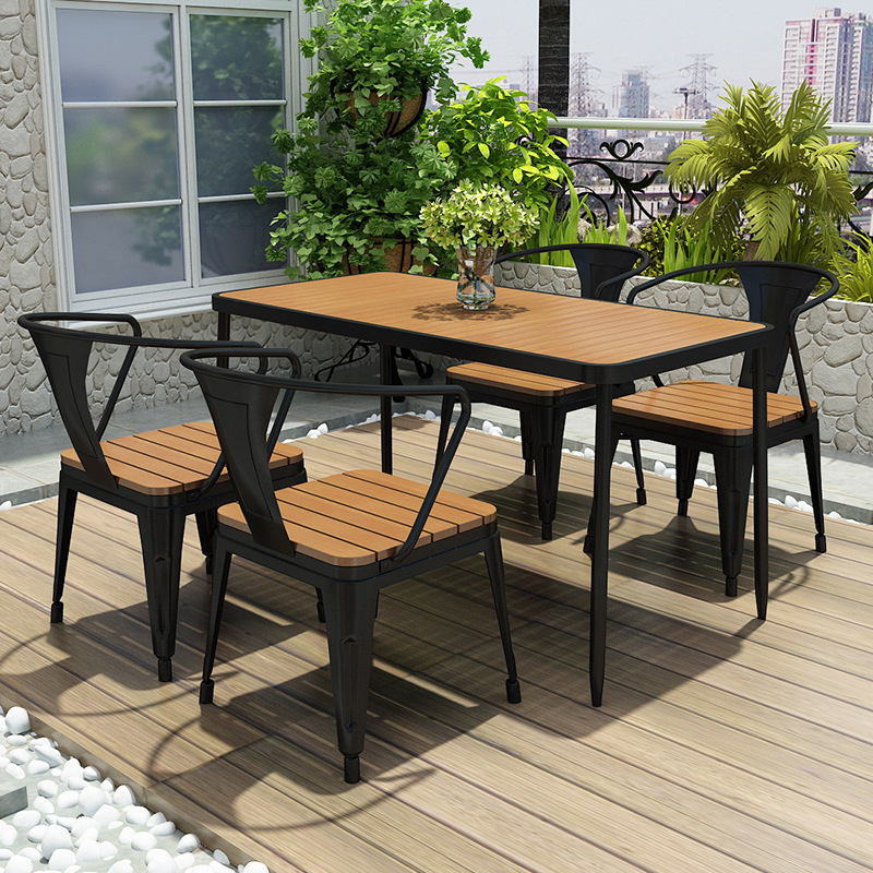 단철 플라스틱 나무 야외 테이블과 의자 조합 발코니 레저 테이블과 의자 방수 자외선 차단제 안뜰 야외 식탁과 의자 세트
