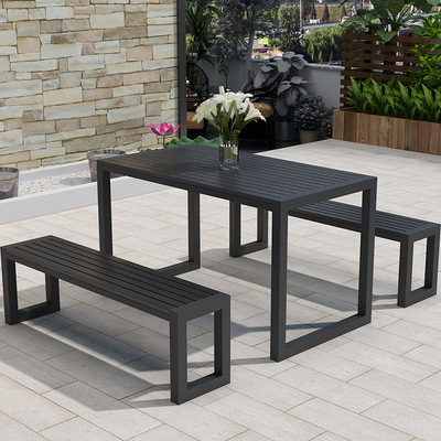 단철 플라스틱 나무 야외 테이블과 의자 조합 발코니 레저 테이블과 의자 방수 자외선 차단제 안뜰 야외 식탁과 의자 세트스토어 가기