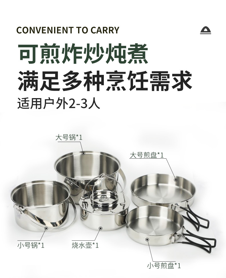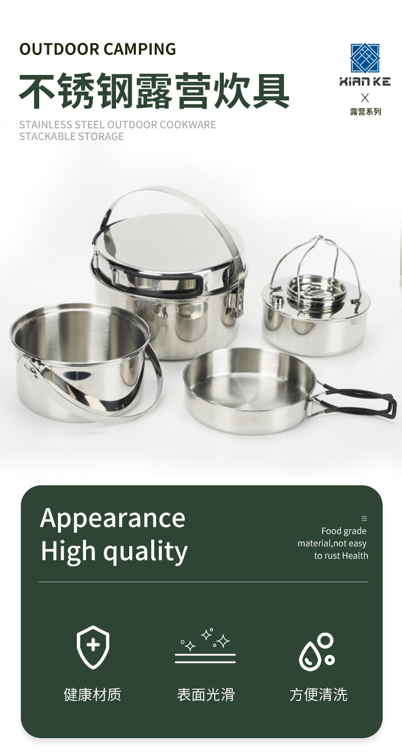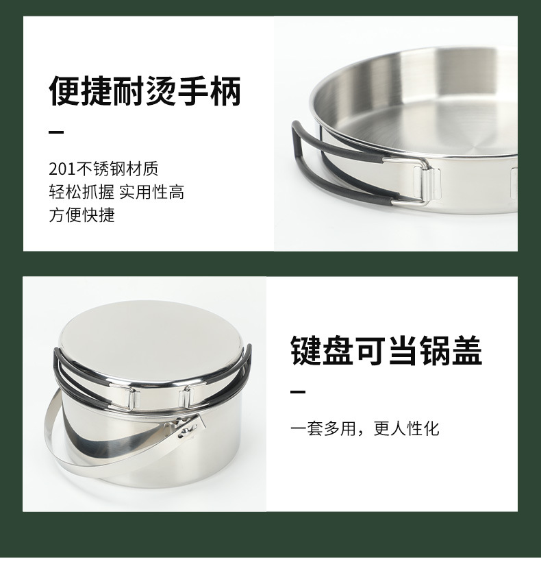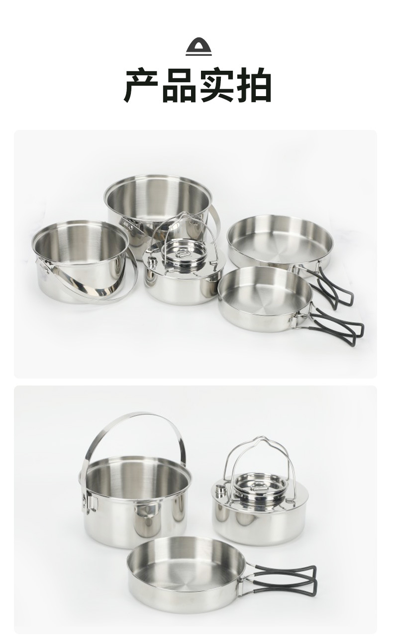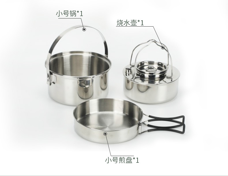 맞춤형 야외 캠핑 냄비 세트 피크닉 캠핑 나들이 요리 접이식 캠핑 스테인레스 스틸 세트 냄비