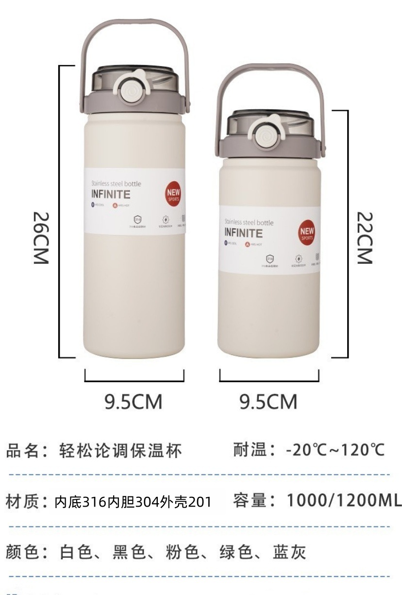 야외 등산 및 스포츠를 위한 대용량 보온병 컵, 이중 목적, 고급스러운 휴대용 선물용 물컵