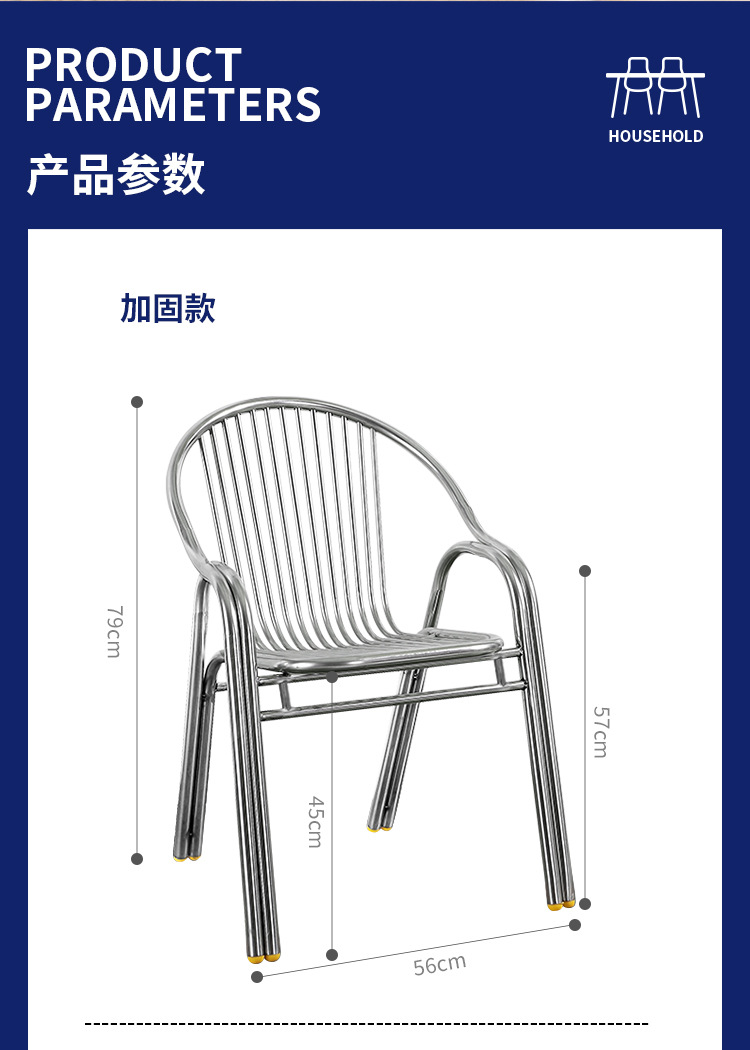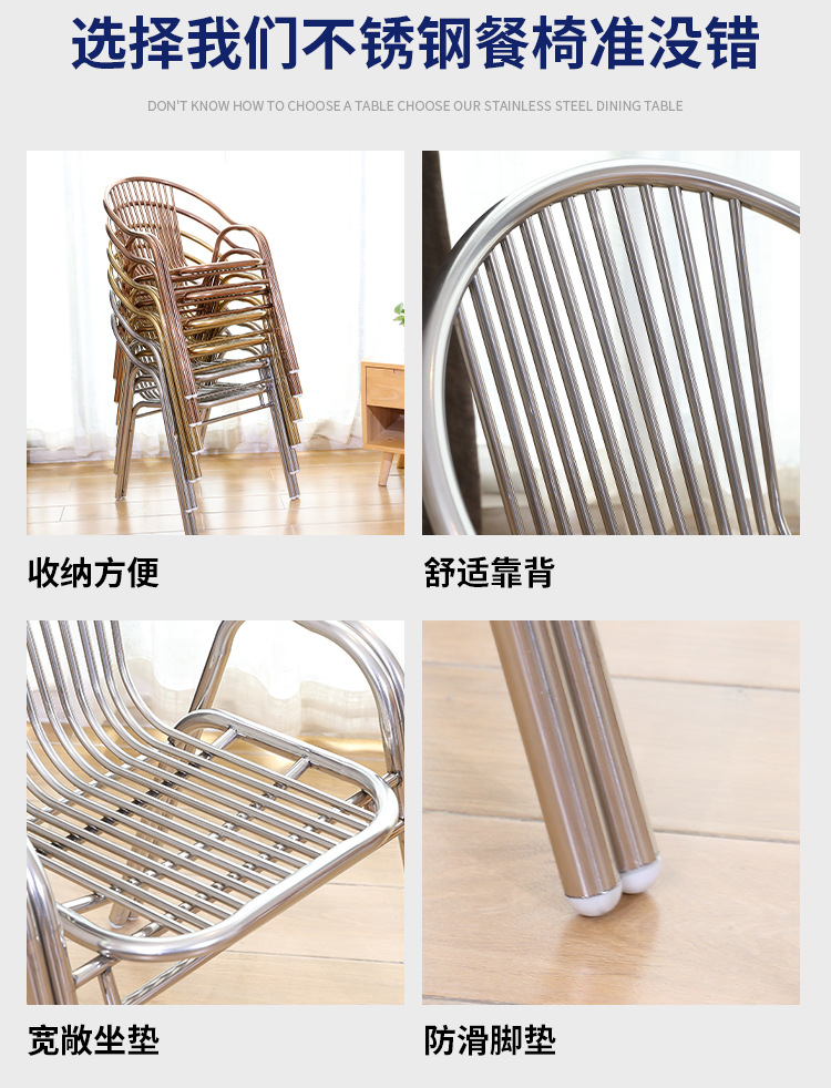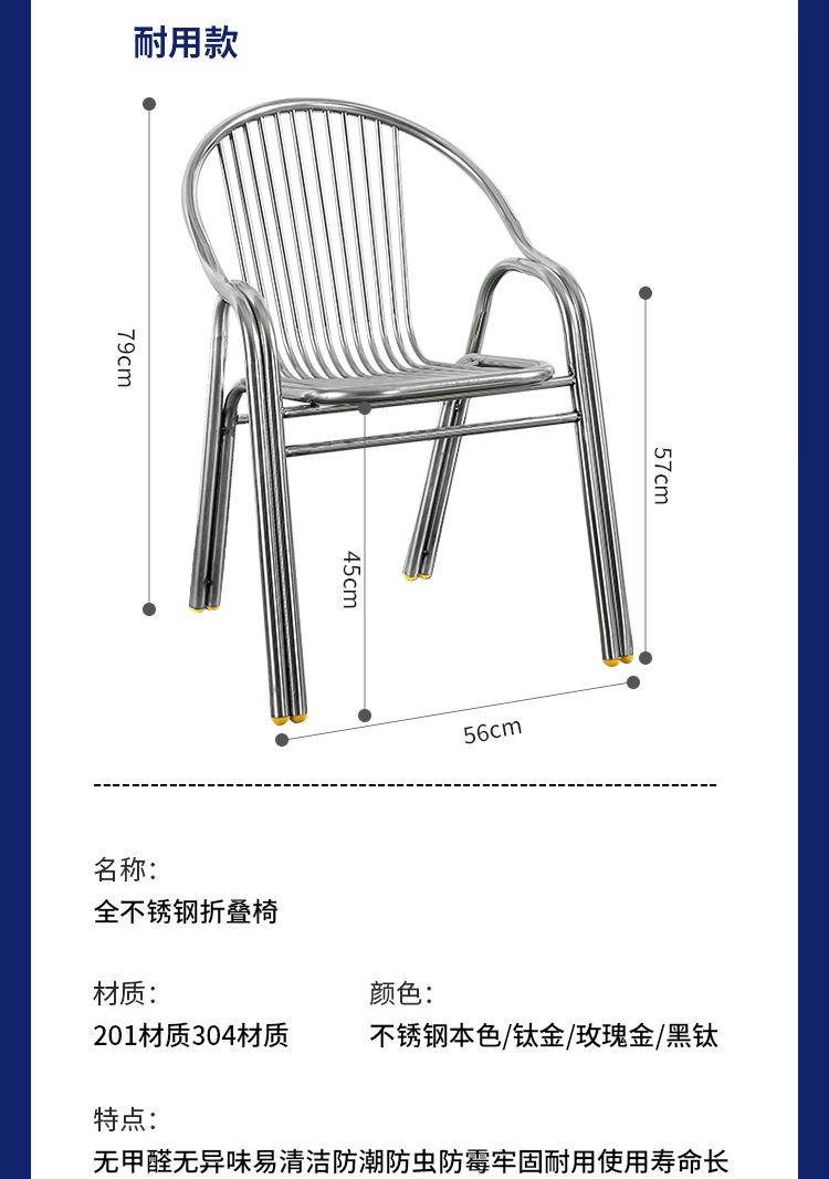 • 201 스테인레스 스틸 더블 튜브 의자 (기본 색상)