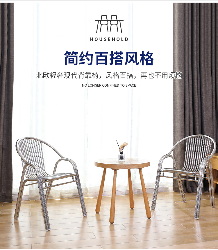 스테인레스 스틸 의자 현대 간단한 금속 등받이 의자 야외 발코니 식당 의자 단일 팔걸이 레저 좌석 도매스토어 가기