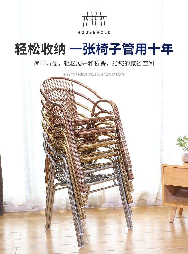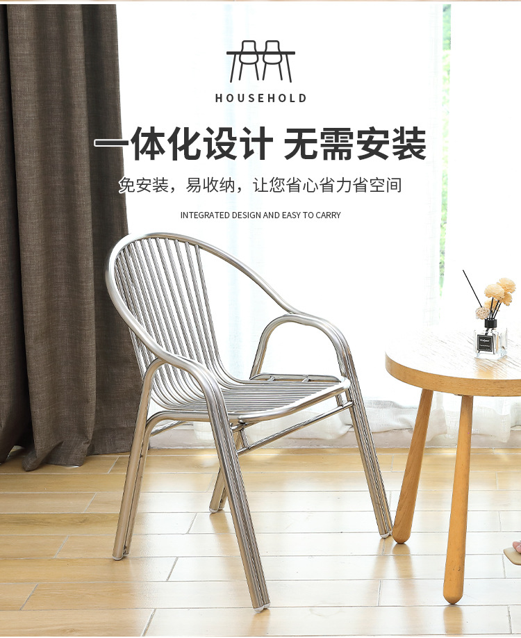 스테인레스 스틸 의자 현대 간단한 금속 등받이 의자 야외 발코니 식당 의자 단일 팔걸이 레저 좌석 도매