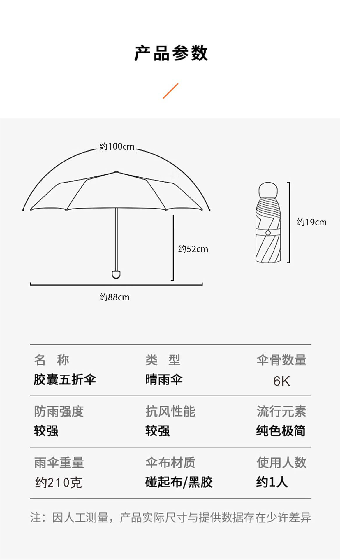 • 6 뼈 캡슐 5 배 우산 일반 검정 고무 아이보리
