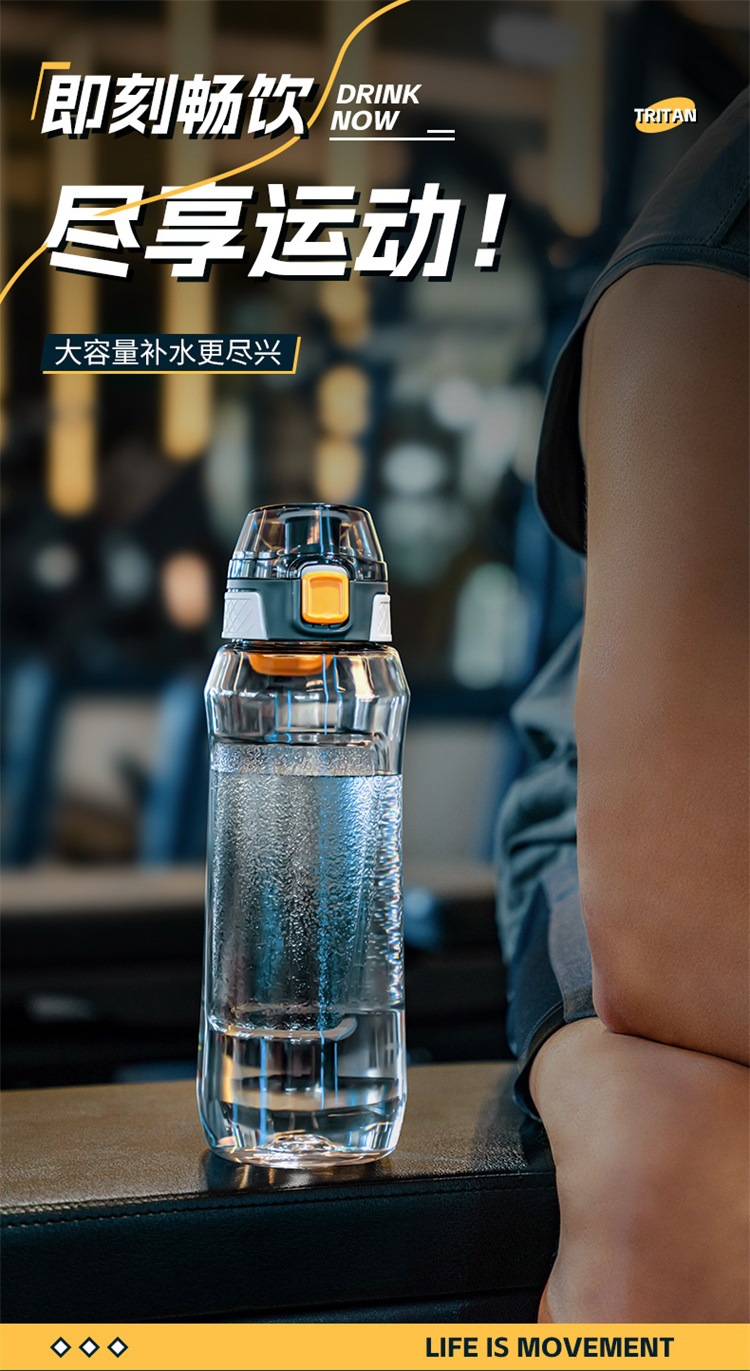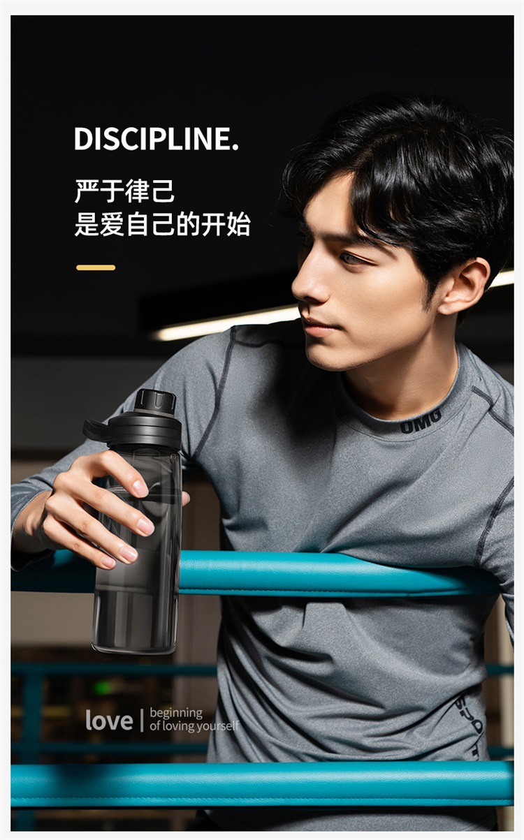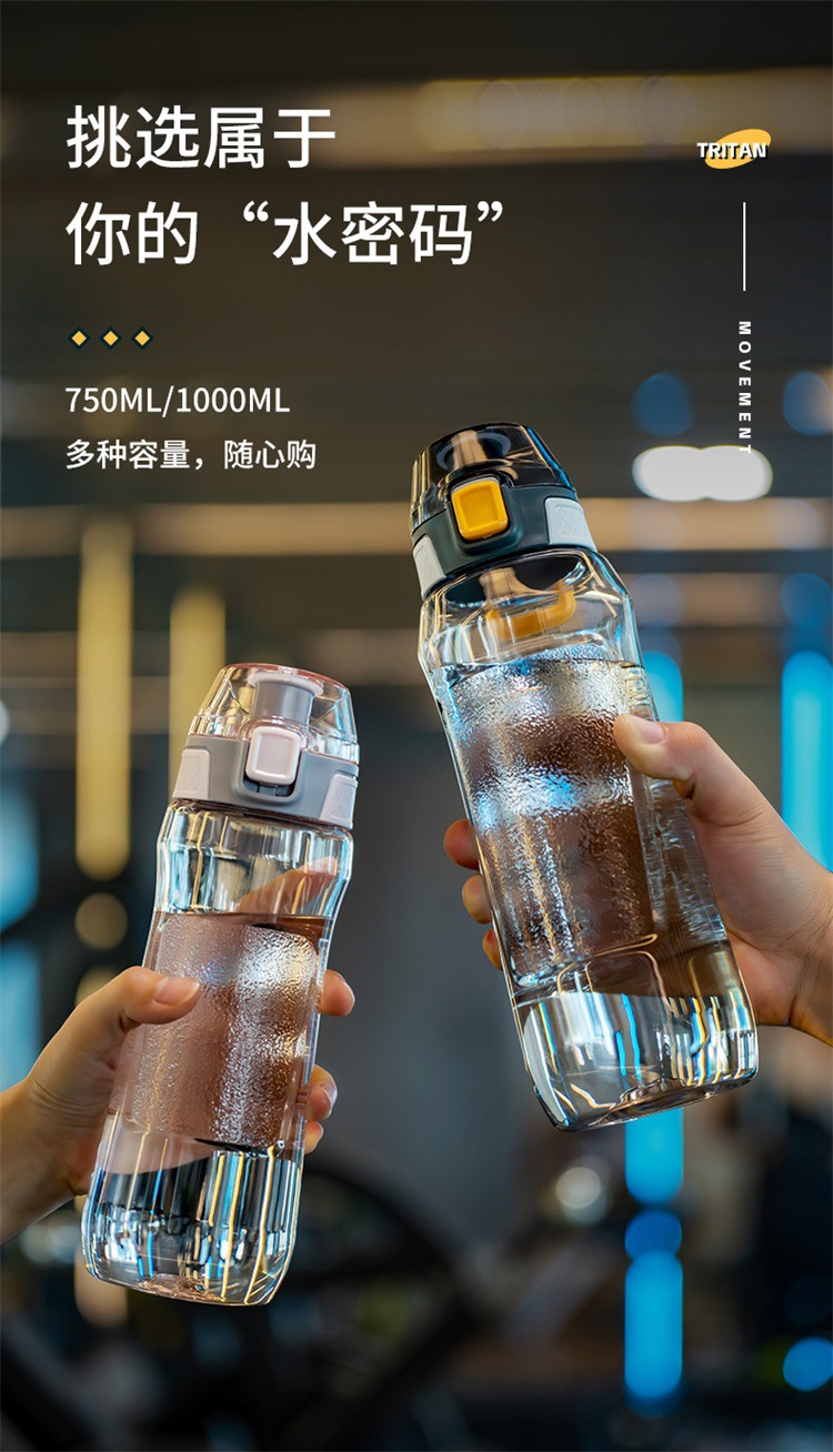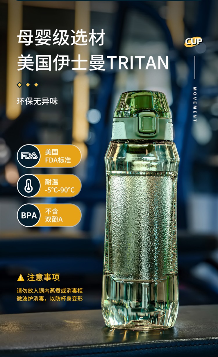 Tritan 스포츠 물 컵 남성과 여성을위한 휴대용 피트니스 컵 고온 저항 물병 대용량 플라스틱