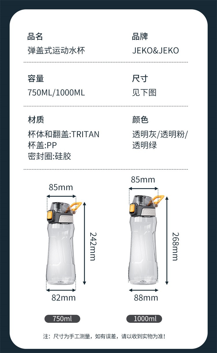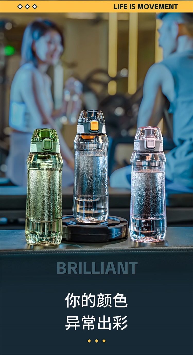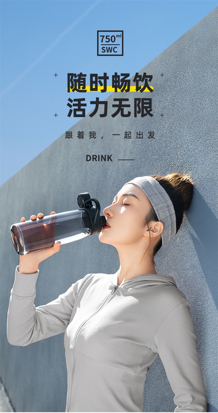 Tritan 스포츠 물 컵 남성과 여성을위한 휴대용 피트니스 컵 고온 저항 물병 대용량 플라스틱