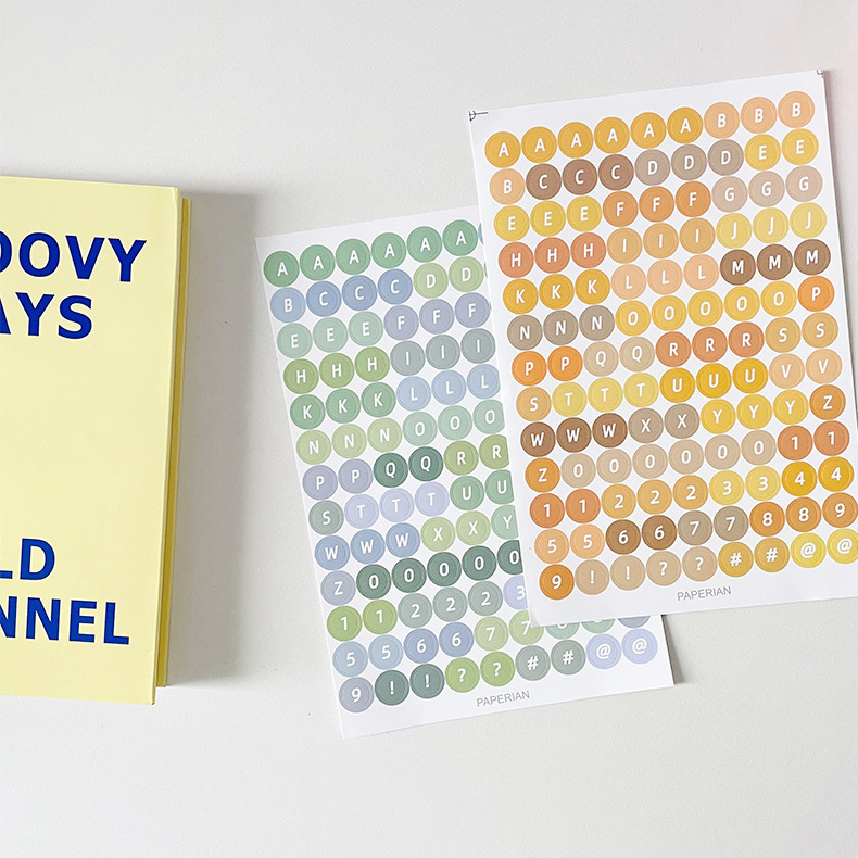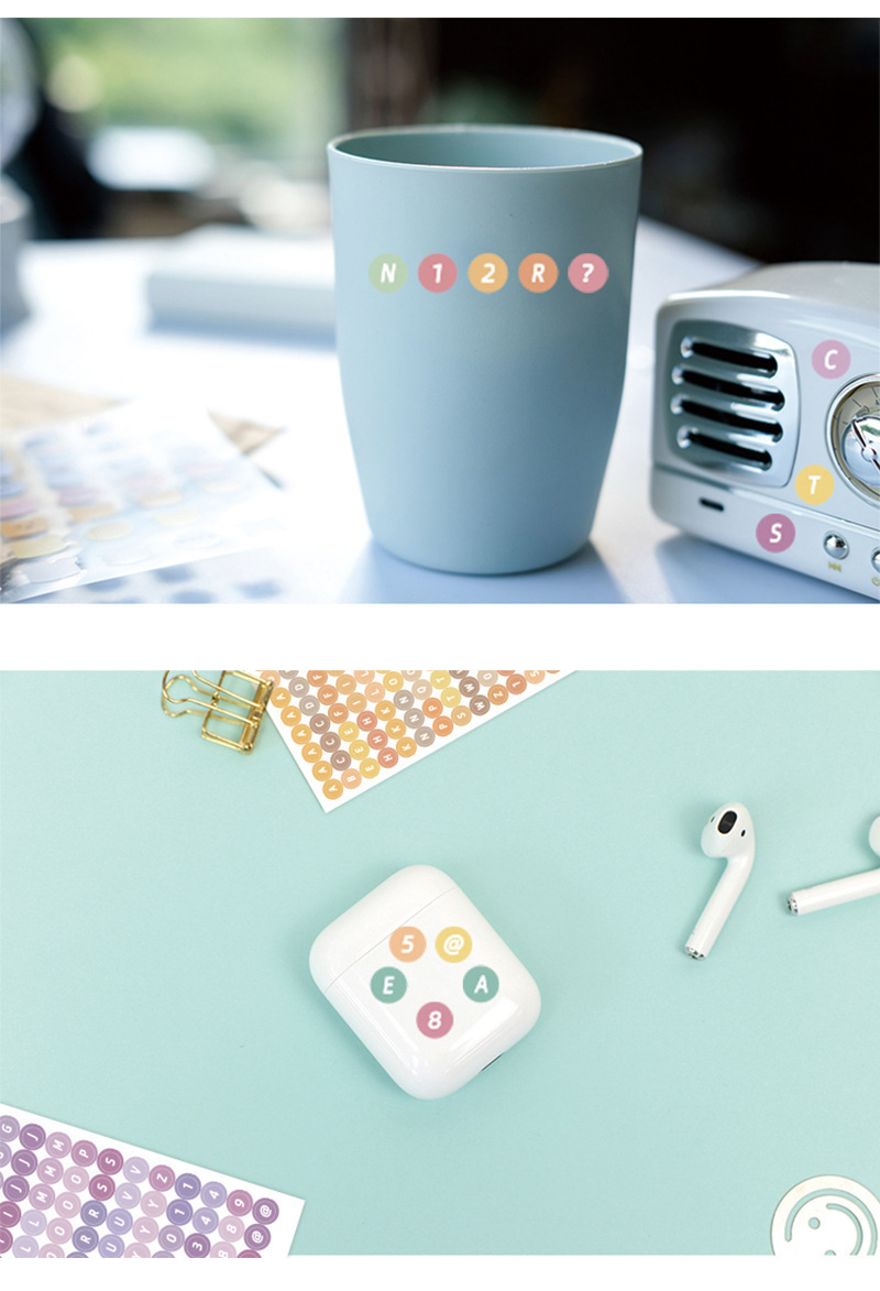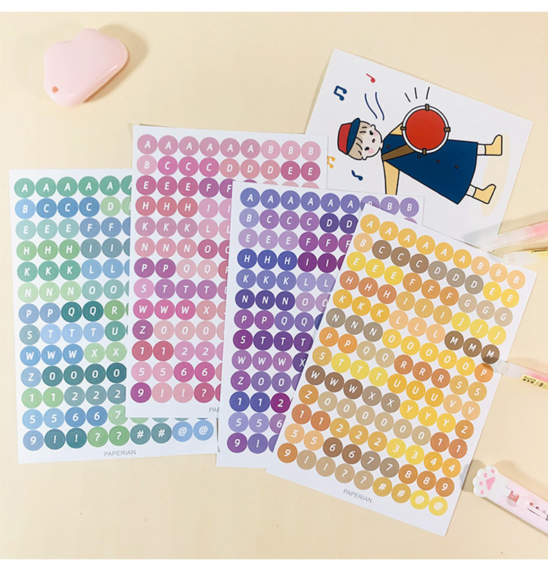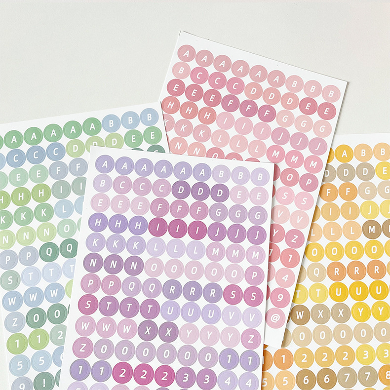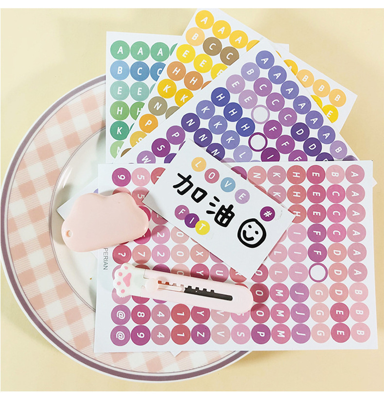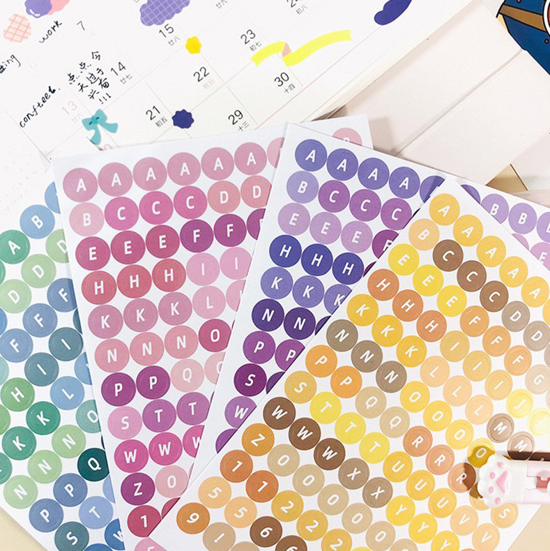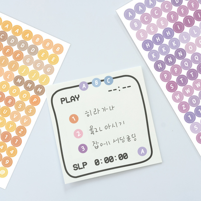 한국어 구카 컬러 라운드 영어 영숫자 수첩 스티커 구카 스티커 수첩 소재 문구 스티커