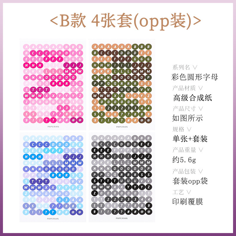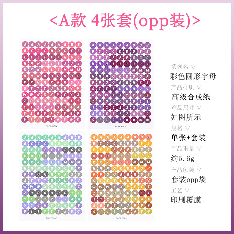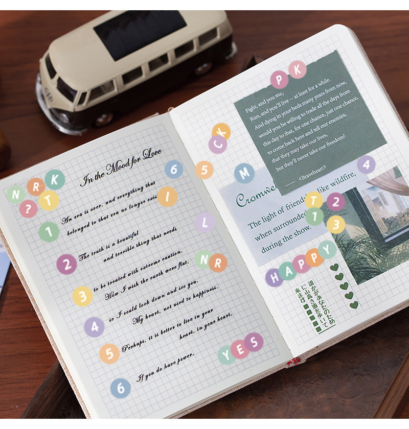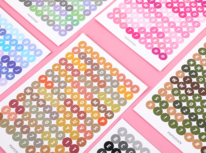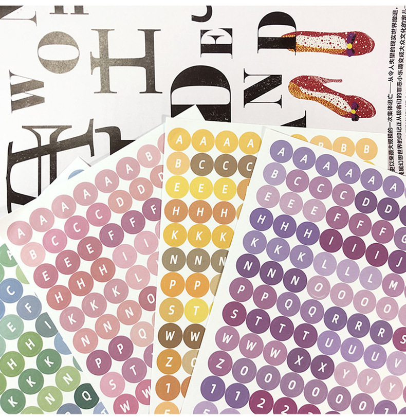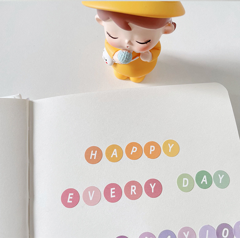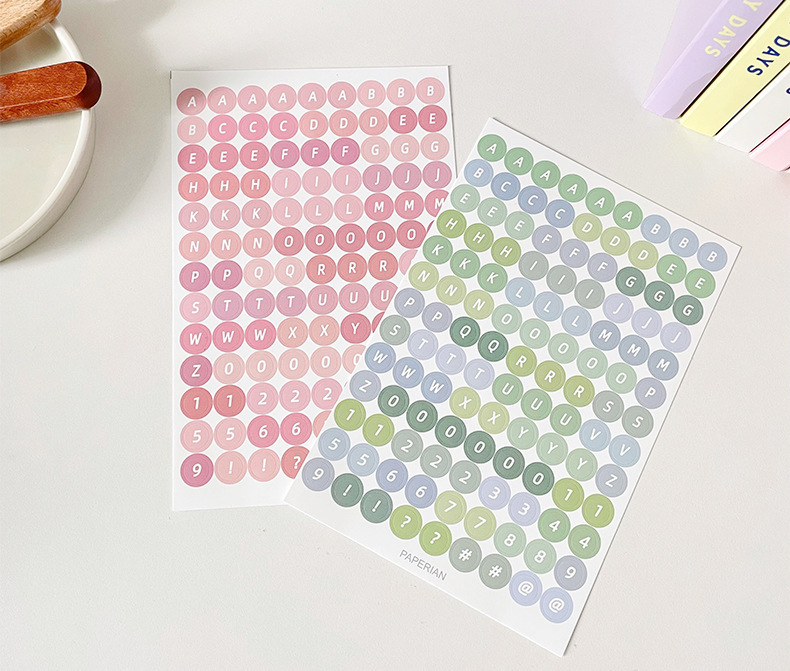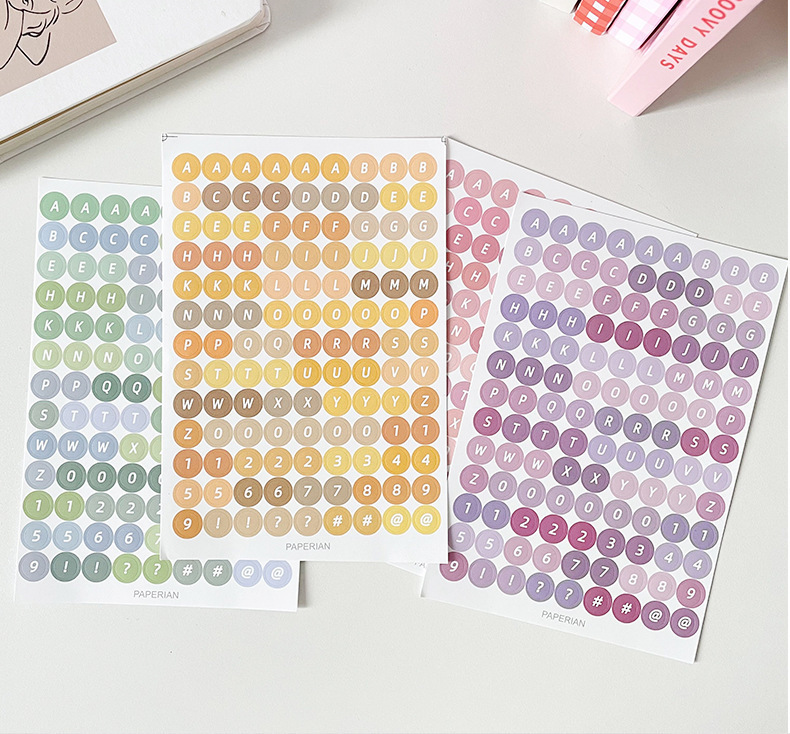 한국어 구카 컬러 라운드 영어 영숫자 수첩 스티커 구카 스티커 수첩 소재 문구 스티커