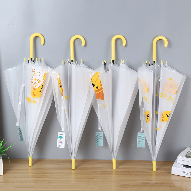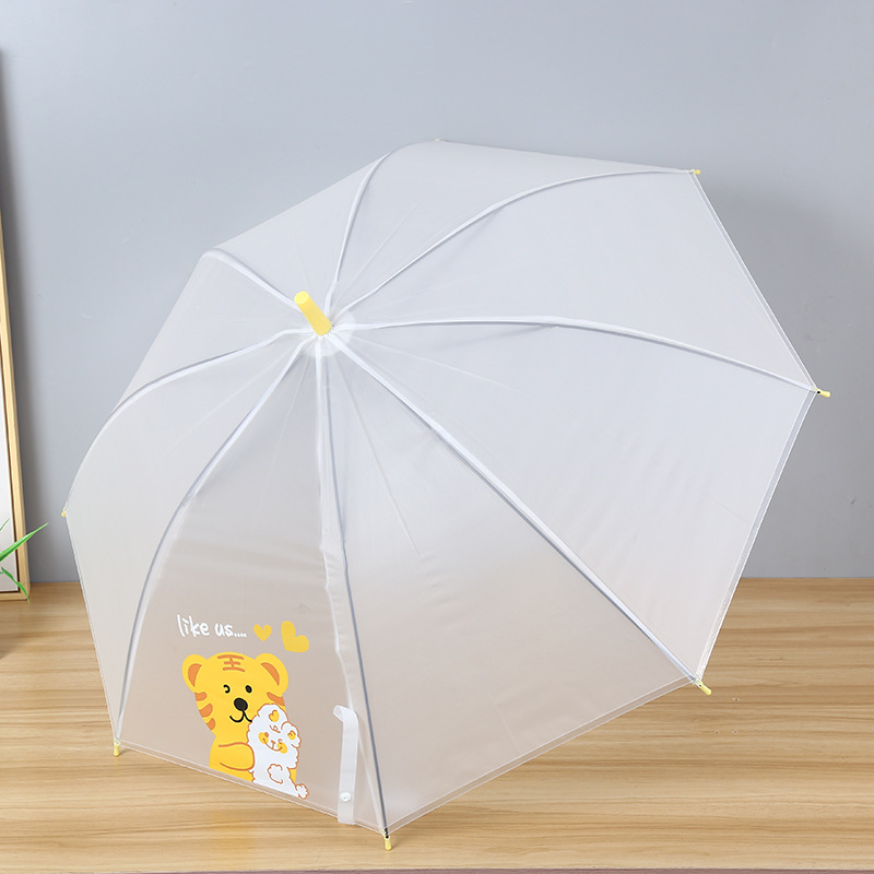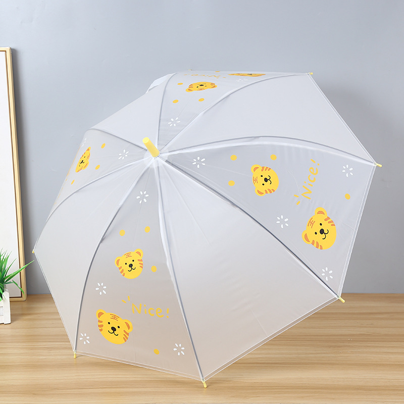 만화 호랑이 시리즈 투명한 긴 손잡이 우산 귀여운 아이들 광고 비 기어 도매 맞춤형 로고
