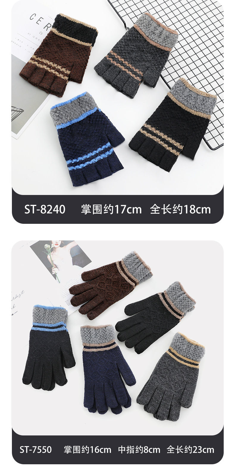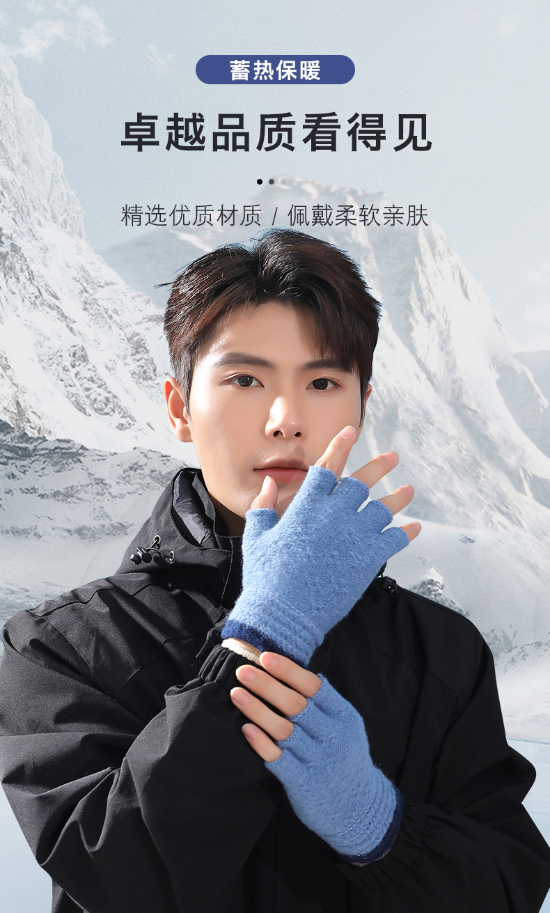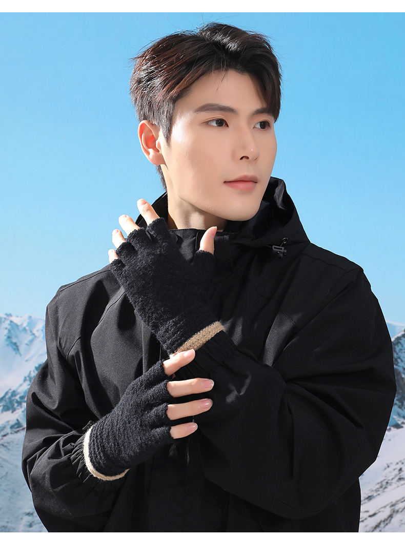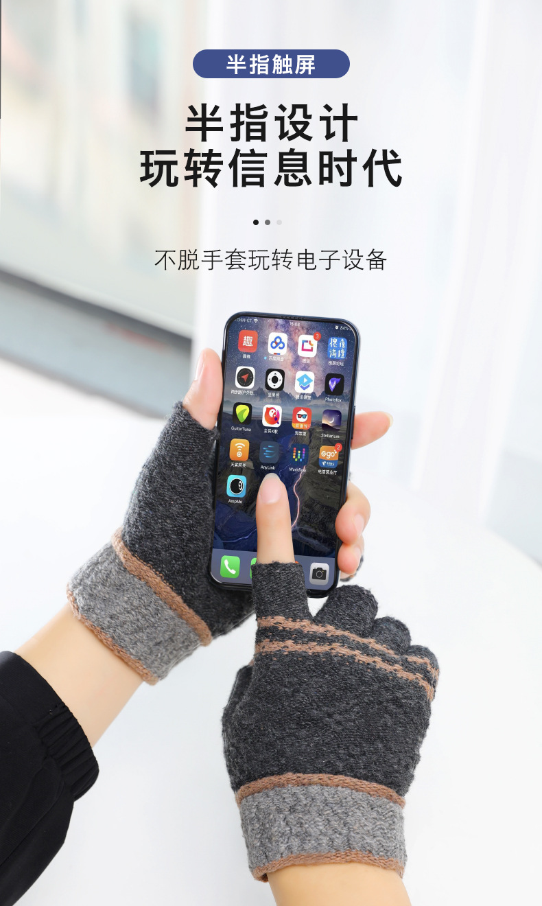 루이야 엄선 남성용 반장갑 가을 겨울 따뜻한 손가락 없는 장갑 남학생 학생용 글쓰기 니트 울 장갑