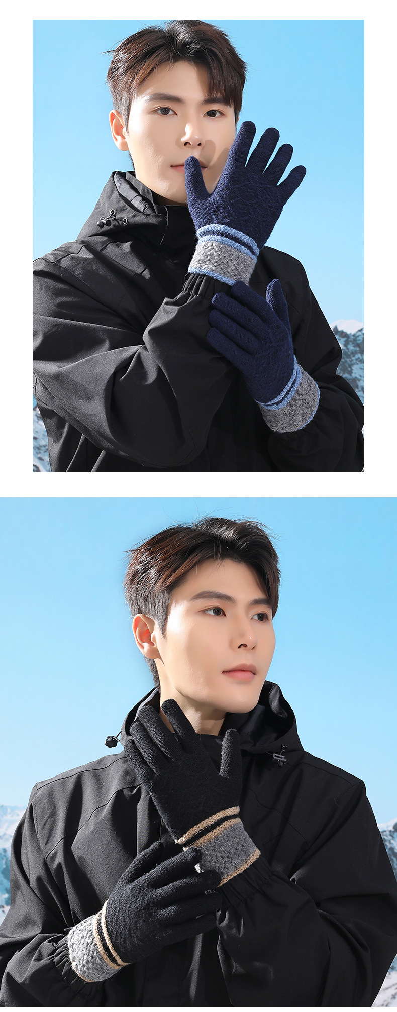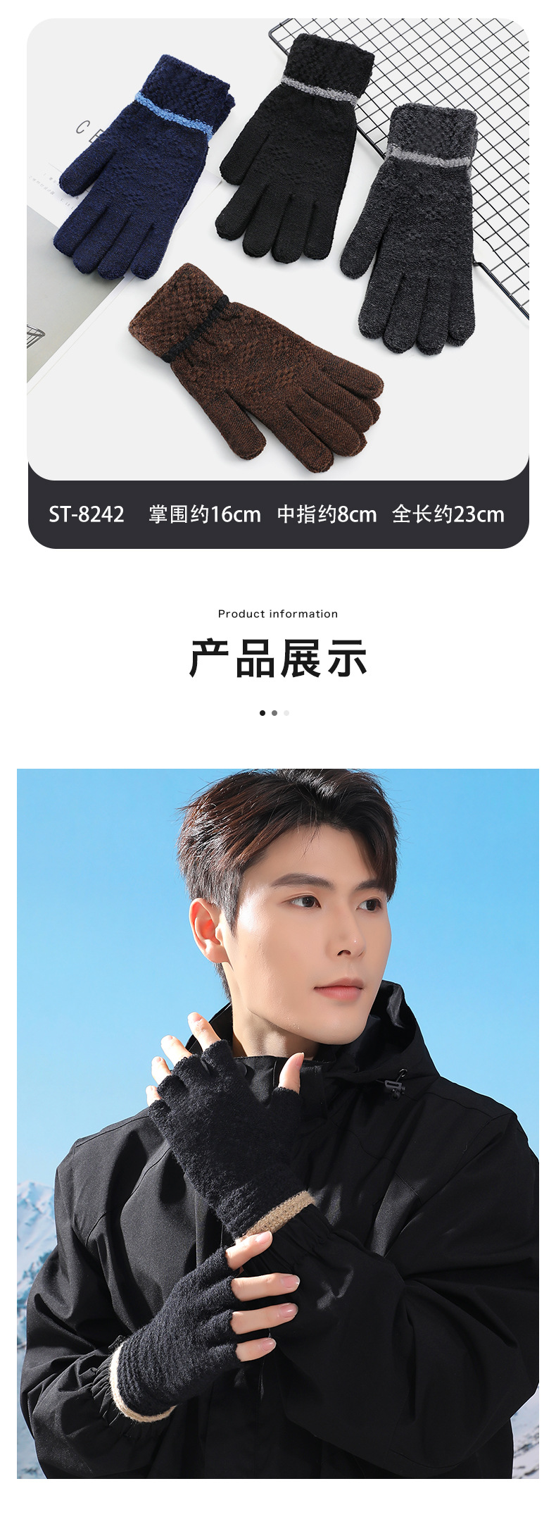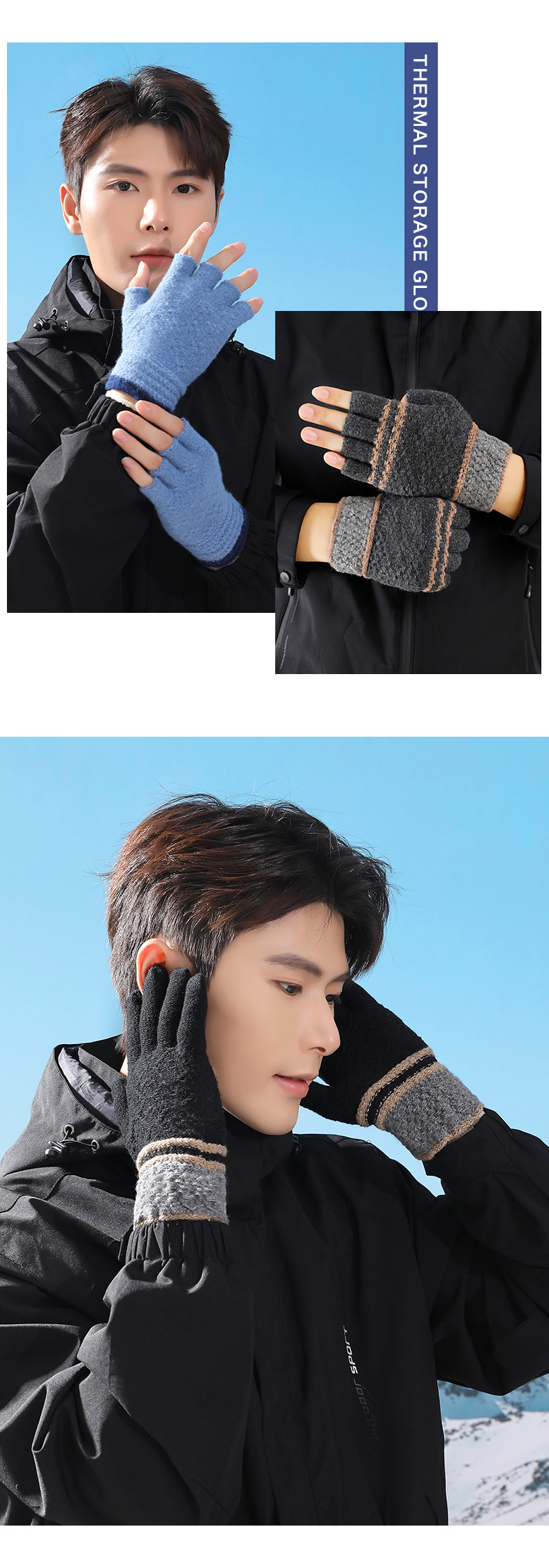 루이야 엄선 남성용 반장갑 가을 겨울 따뜻한 손가락 없는 장갑 남학생 학생용 글쓰기 니트 울 장갑