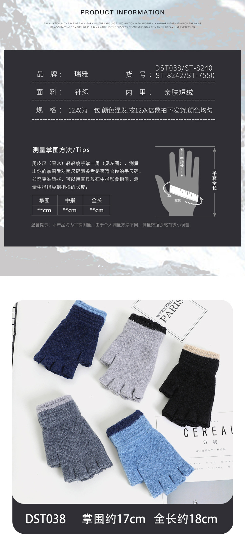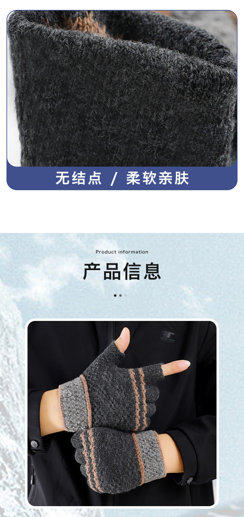 루이야 엄선 남성용 반장갑 가을 겨울 따뜻한 손가락 없는 장갑 남학생 학생용 글쓰기 니트 울 장갑스토어 가기