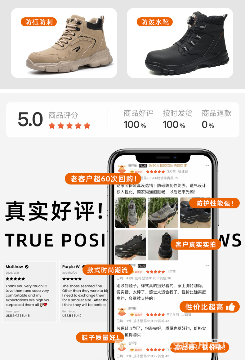 사계절 노동 보호 신발 남성 노동 보호 신발 반 스매시 방지 펑크 방수 경량 안전 신발 미끄럼 방지 작업 신발 도매스토어 가기