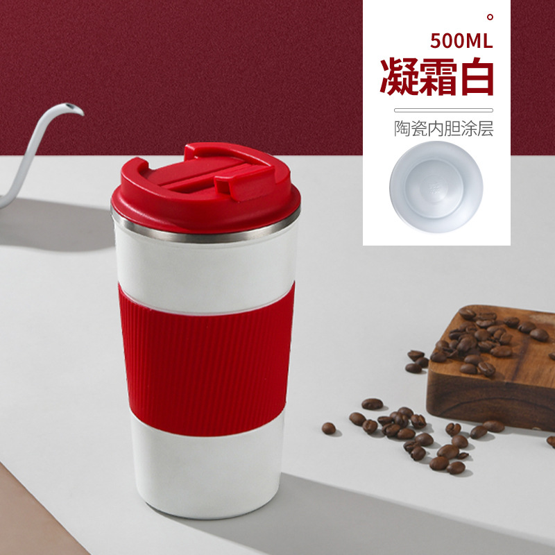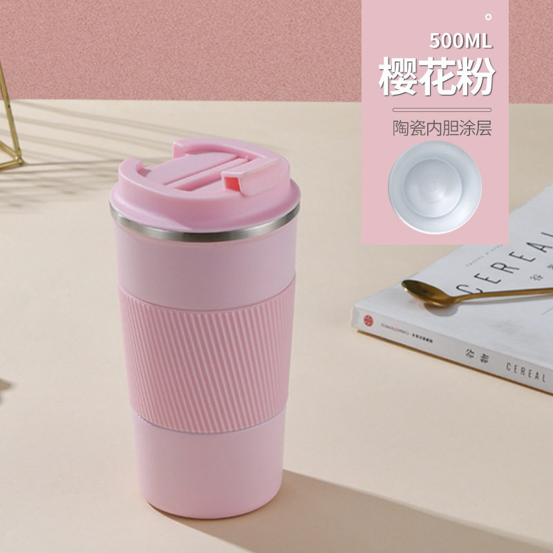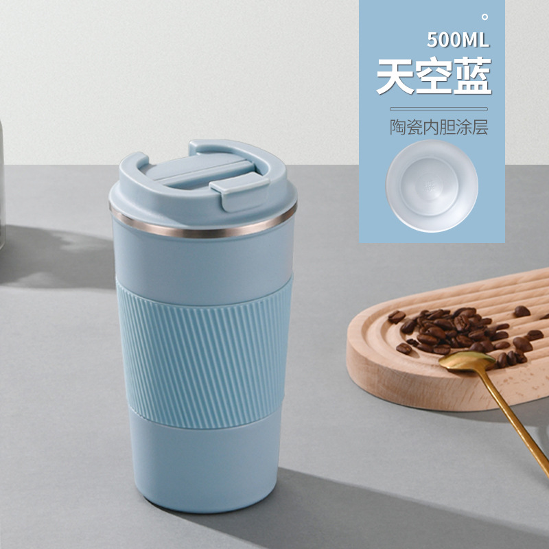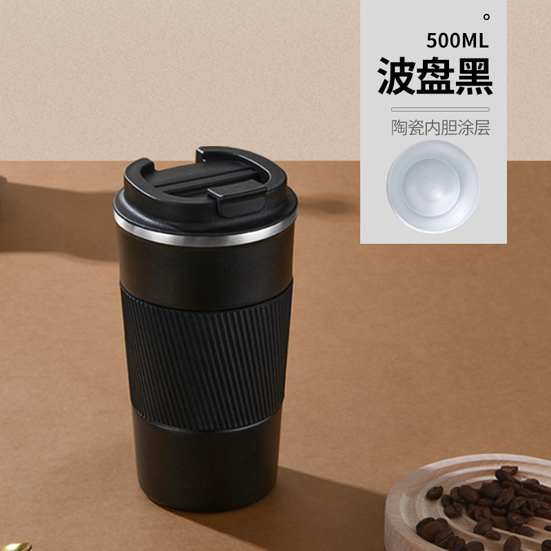 새로운 가죽 케이스 세라믹 라이너 커피 컵 스테인레스 스틸 진공 절연 컵 워터 컵 야외 휴대용 컵
