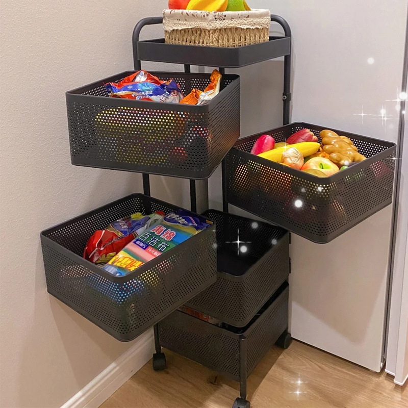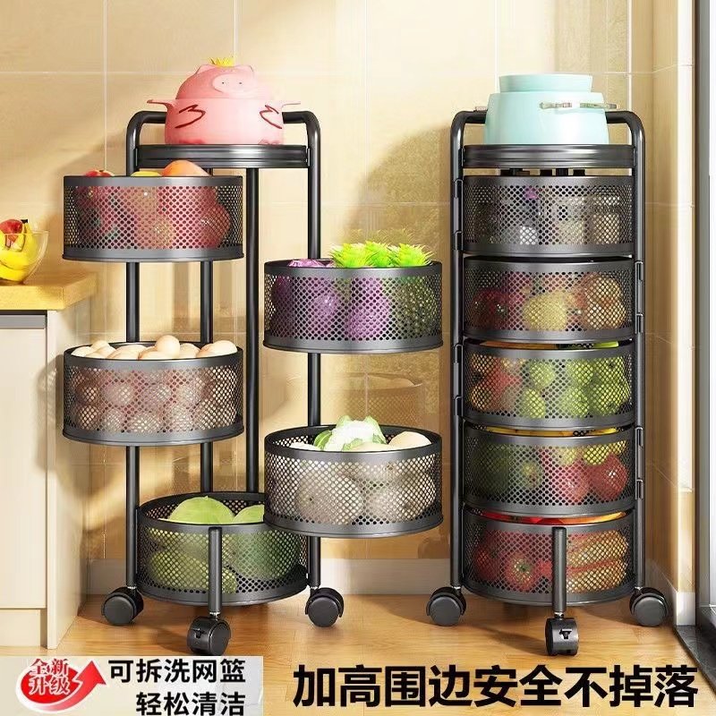 과일 및 야채 바구니 용 이동식 회전 스토리지 랙 주방 특수 바닥 다층 모바일 스토리지 랙
