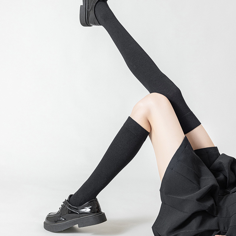 여자의 봄과 가을 슬림 한 모양의 강한 압축 모양의 검은 반 다리 JK 양말 반 배럴 압력 긴 배럴 무릎 양말스토어 가기