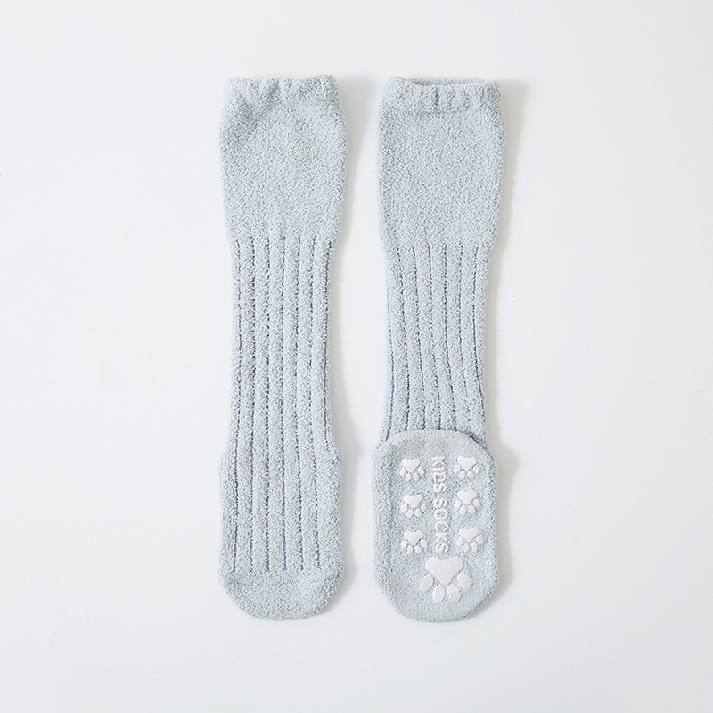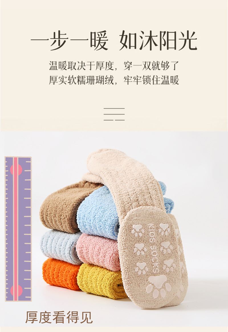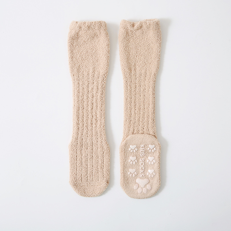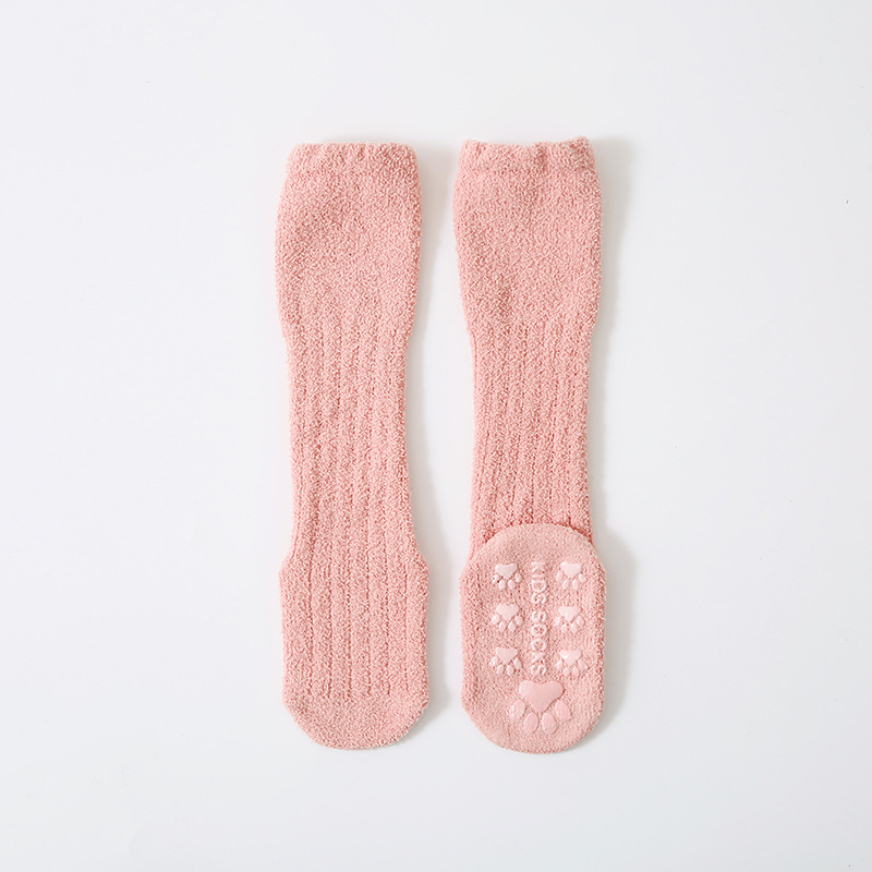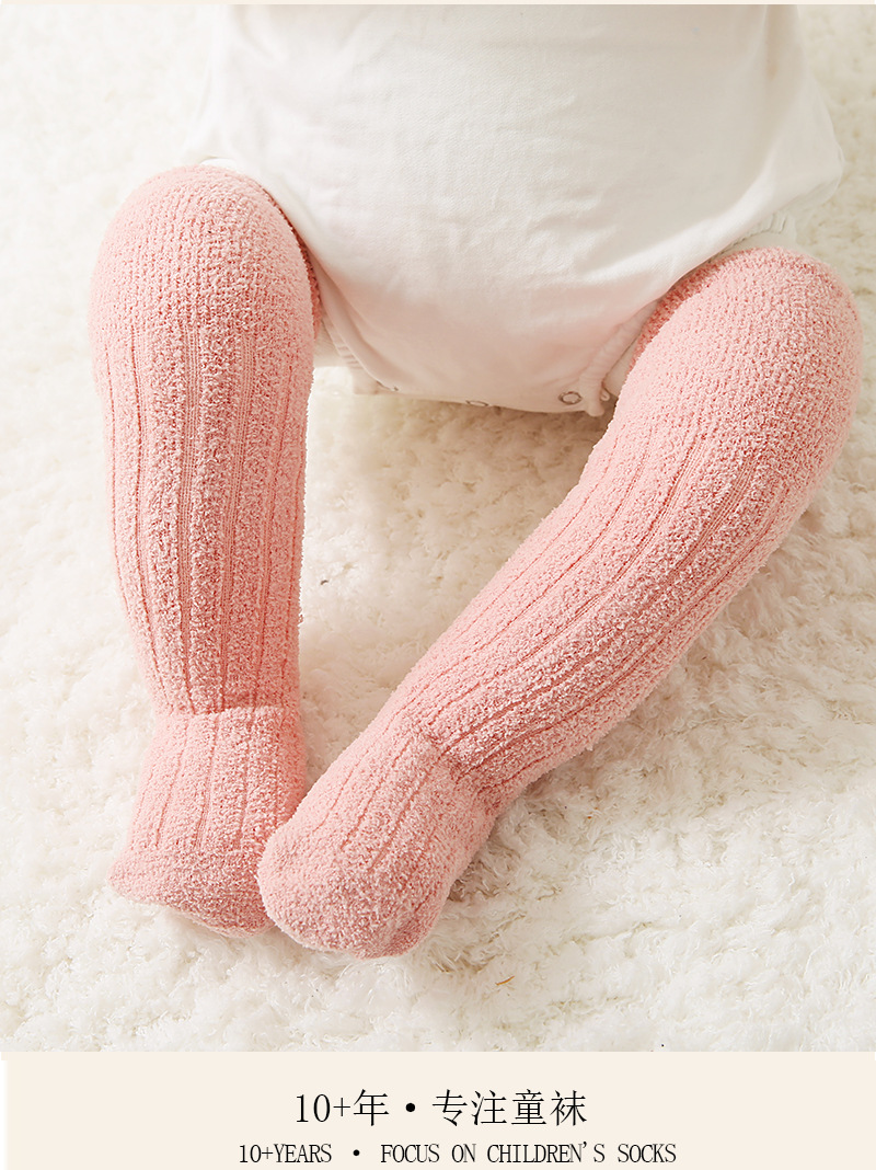 가을과 겨울 기모 두꺼운 산호 양털 아기 어린이 무릎 위 긴 튜브 보풀이없는 분배 유아 실내 미끄럼 방지 바닥 양말