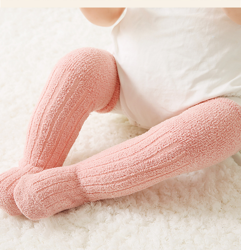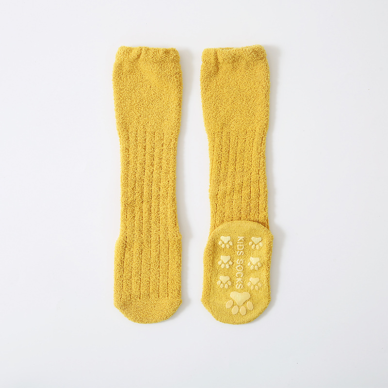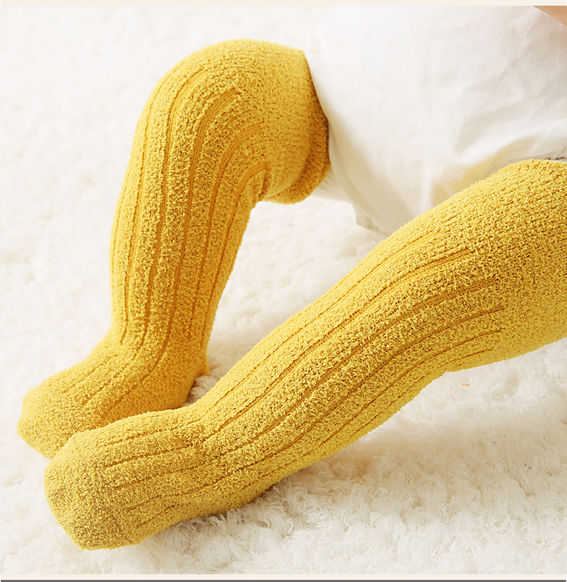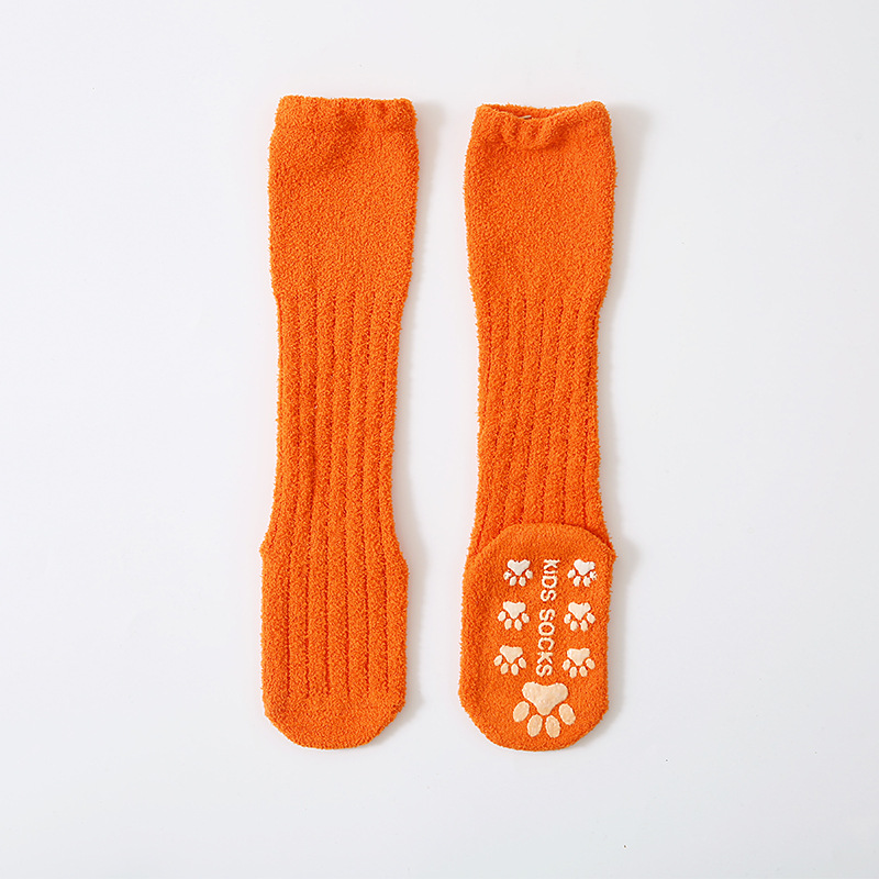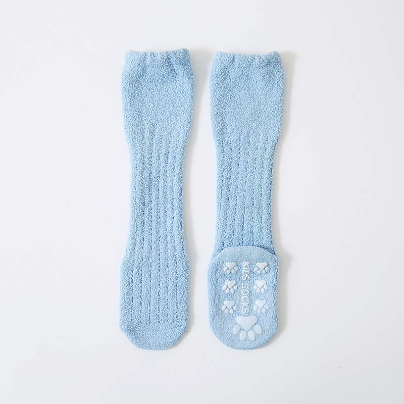 가을과 겨울 기모 두꺼운 산호 양털 아기 어린이 무릎 위 긴 튜브 보풀이없는 분배 유아 실내 미끄럼 방지 바닥 양말