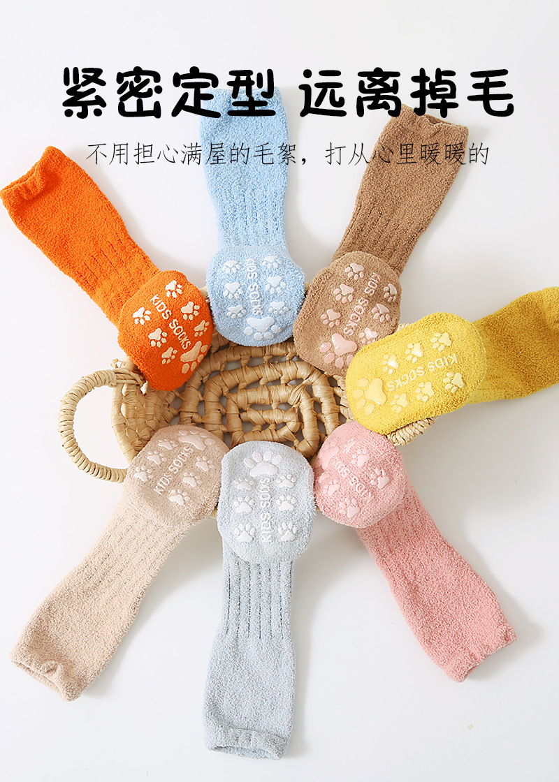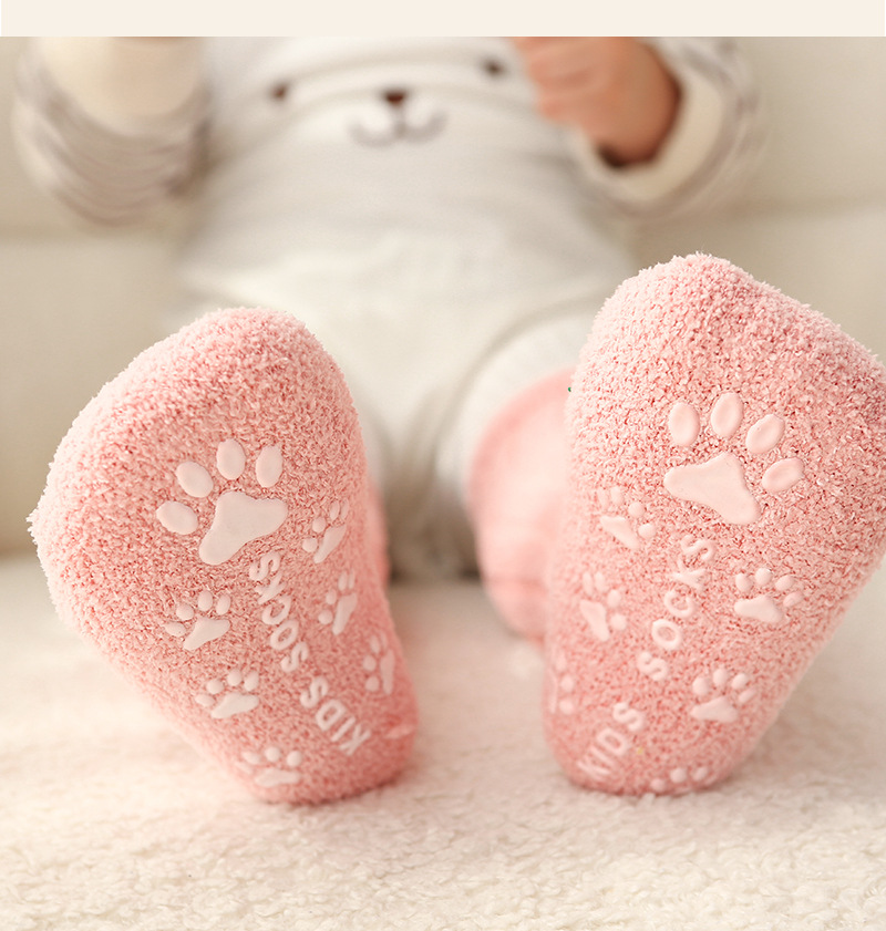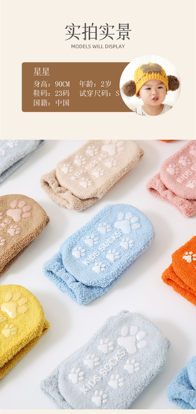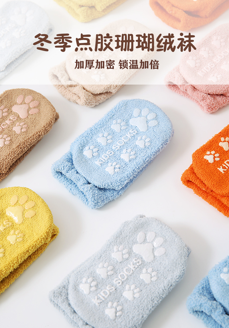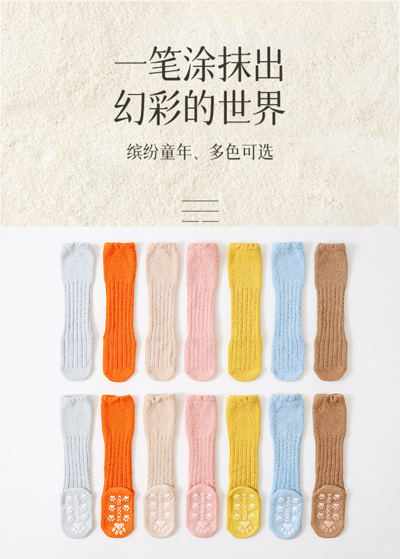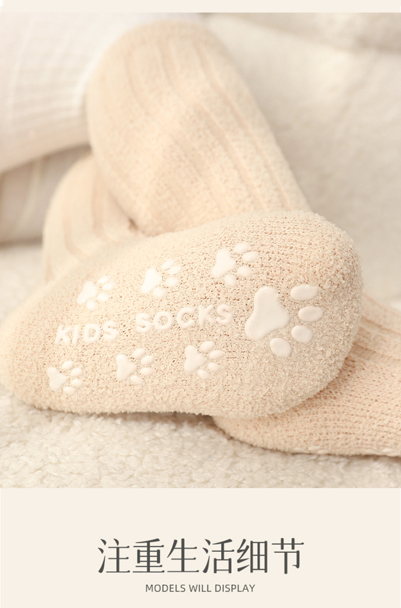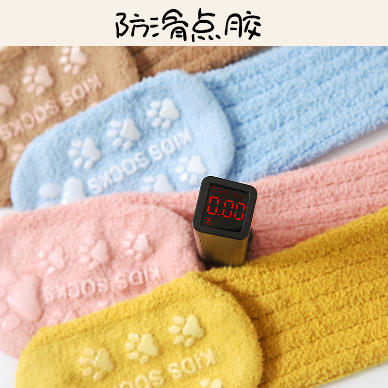 가을과 겨울 기모 두꺼운 산호 양털 아기 어린이 무릎 위 긴 튜브 보풀이없는 분배 유아 실내 미끄럼 방지 바닥 양말스토어 가기