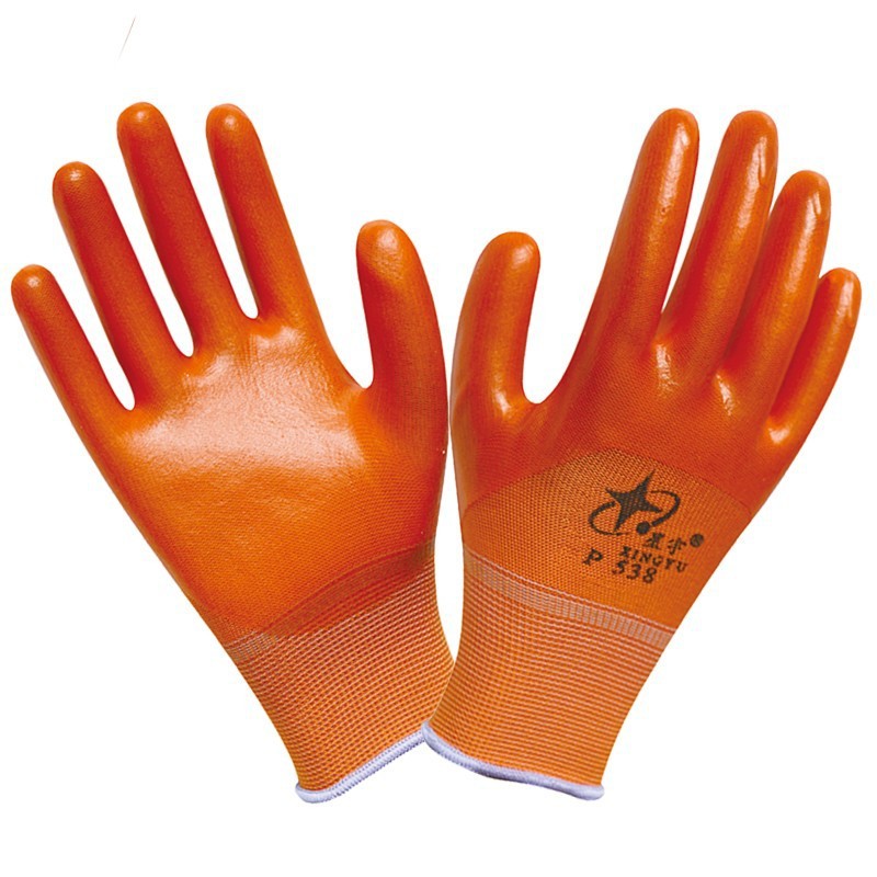 신규 장갑 P538 고무 PVC 원예 작업 노동 보호 디핑 시트 나일론 통기성 산 및 알칼리 방지 미끄럼 방지 코팅 팜