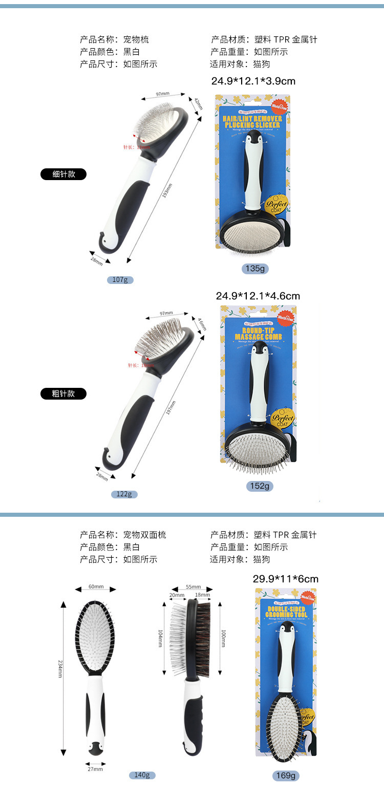 • 펭귄 바늘 빗(두꺼운 바늘 스타일)(마사지 및 빗질)