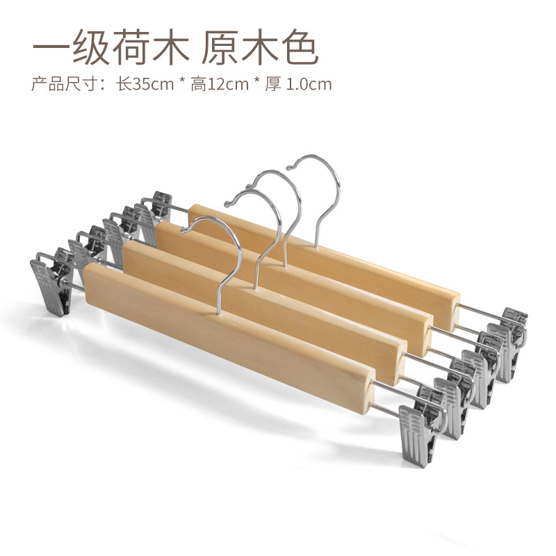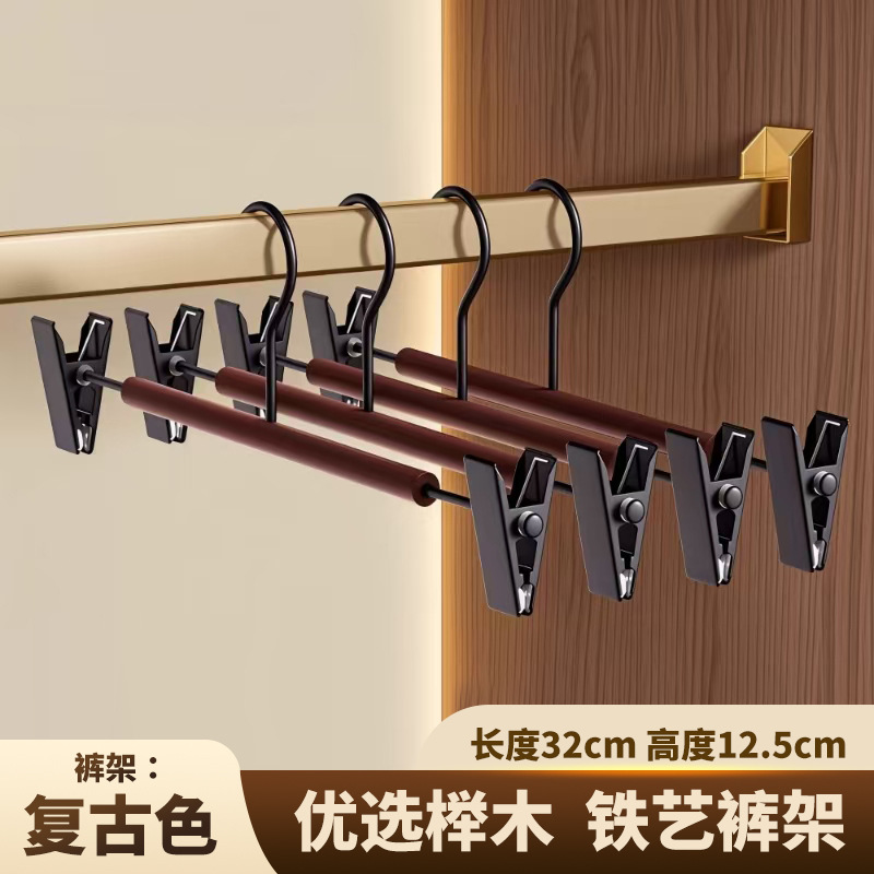 • 플랫 후크 펄 니켈 클립 바지 걸이 우드 컬러