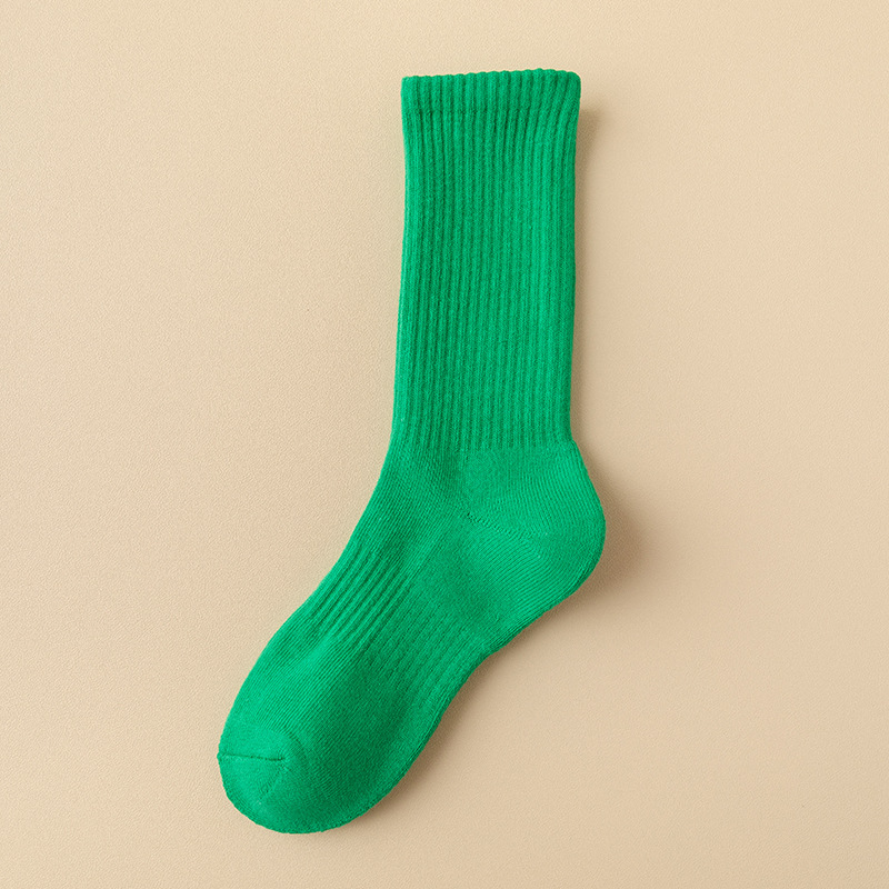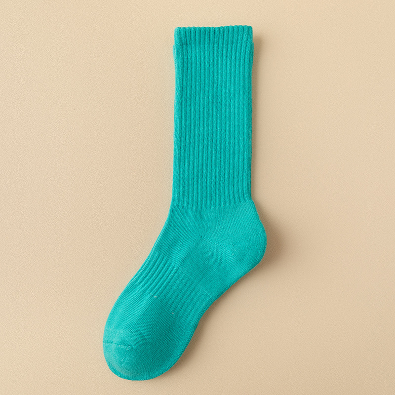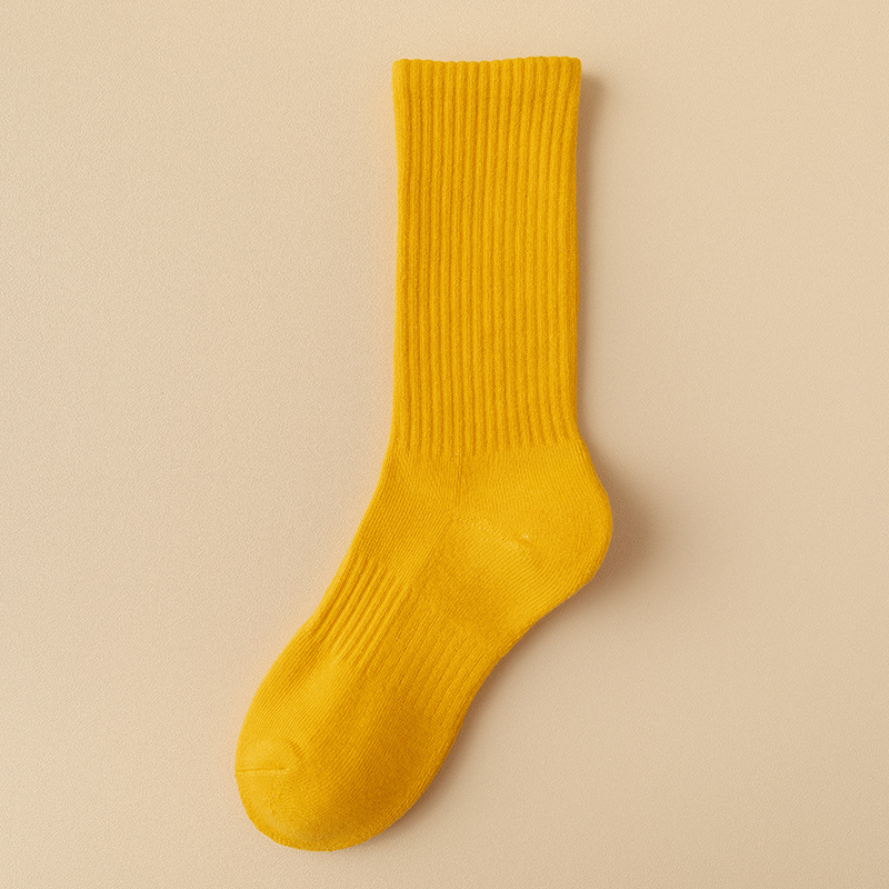 스포츠 양말 여성용 중간 길이 양말 컬러풀한 요가 양말 두꺼운 보온 캐주얼 반모양 긴 양말 댄스 양말