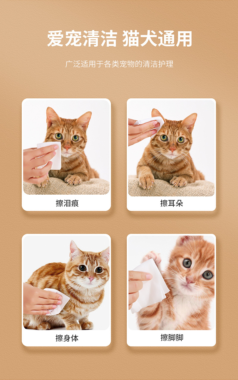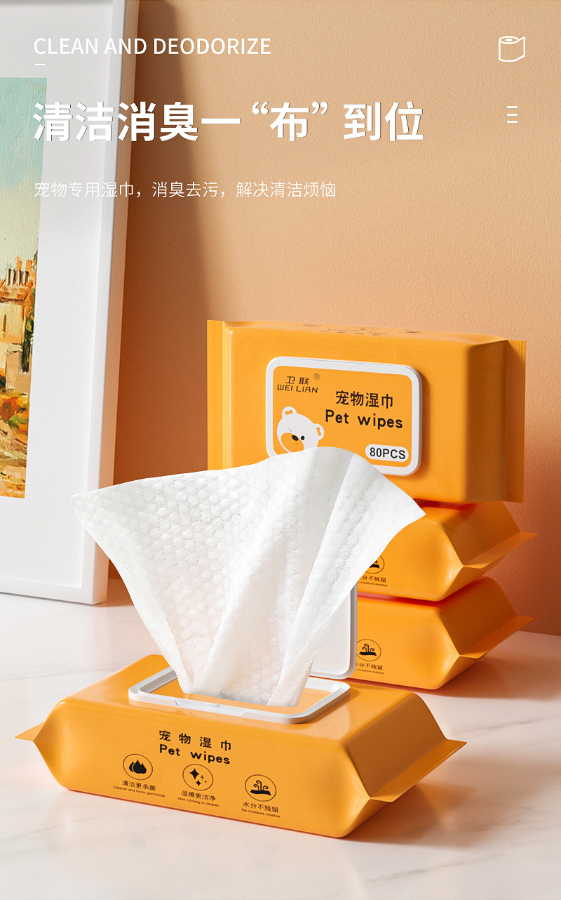 고양이와 강아지를 위한 애완동물 물티슈 80펌프, 눈물자국 청소, 신체 부위 청소, 노워시 탈취 청소 물티슈