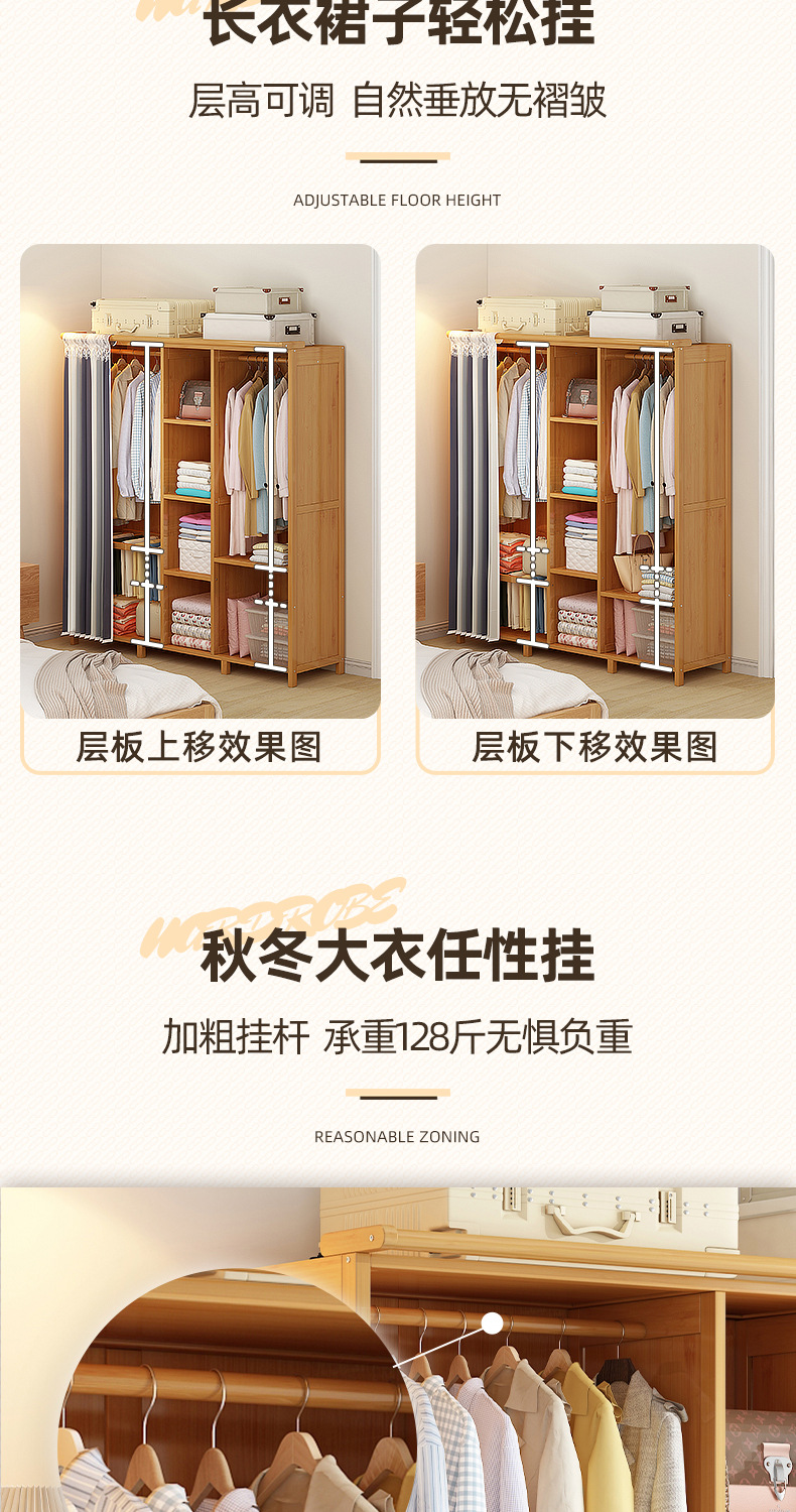 간단한 가정 침실 옷장 간단한 조립 의류 보관 캐비닛 임대실 기숙사 옷 캐비닛 옷장 도매스토어 가기