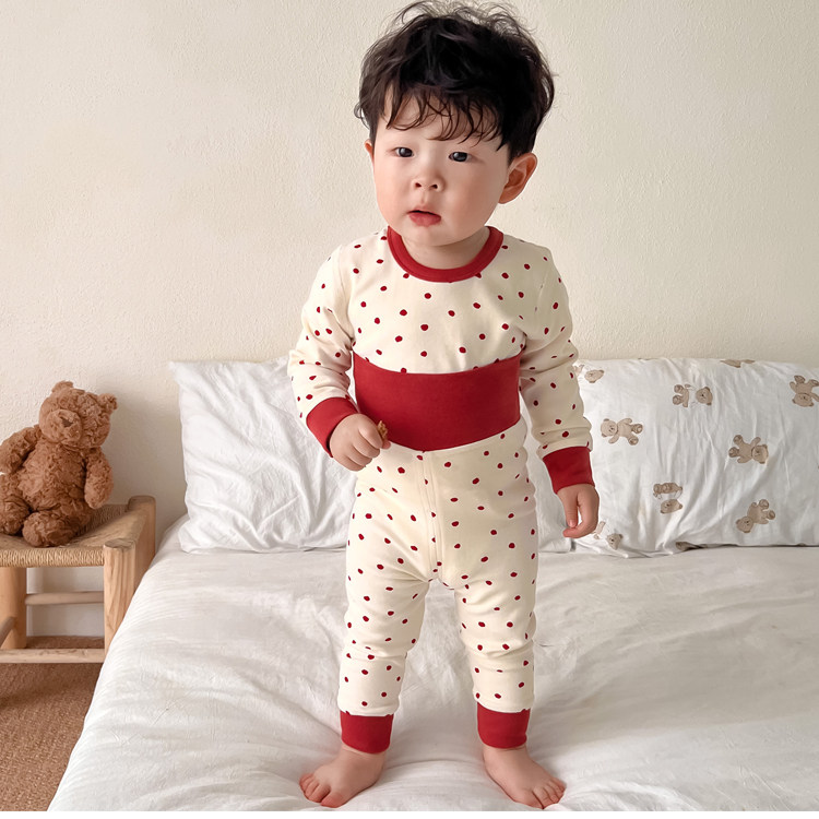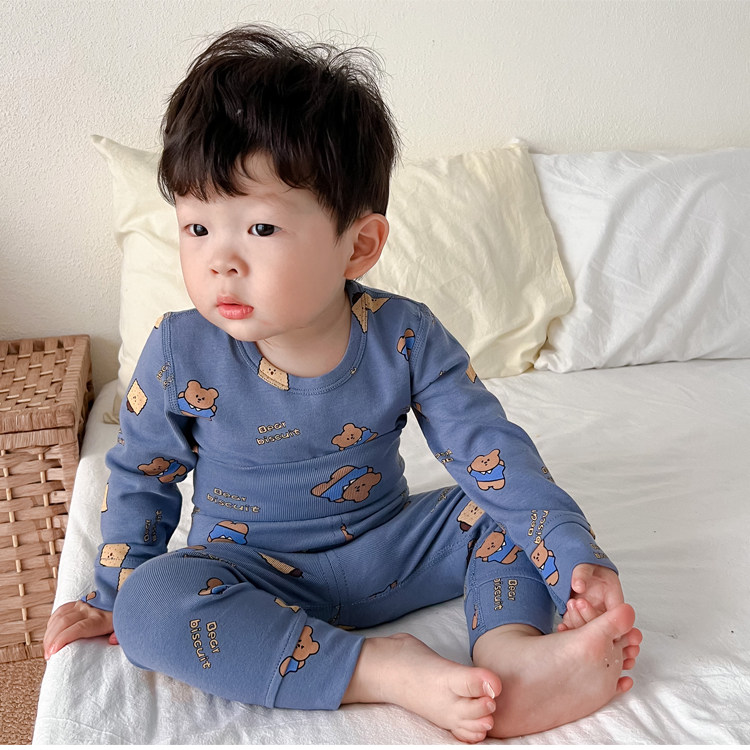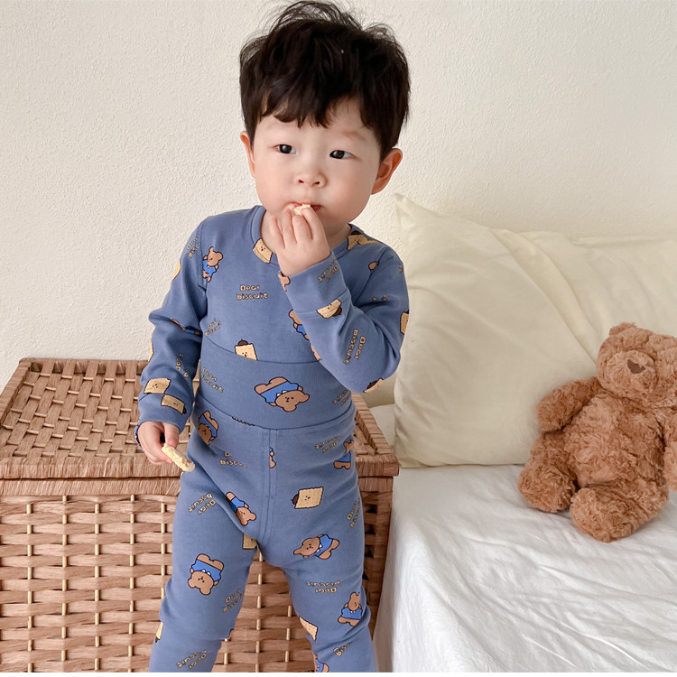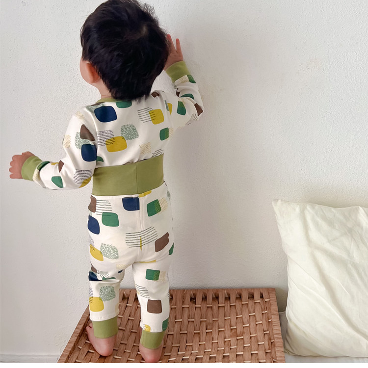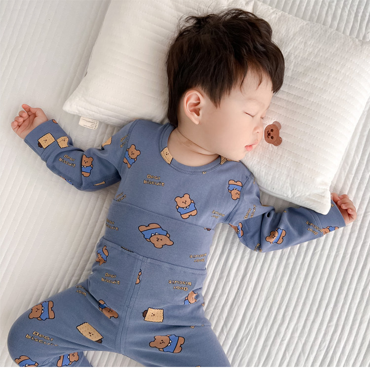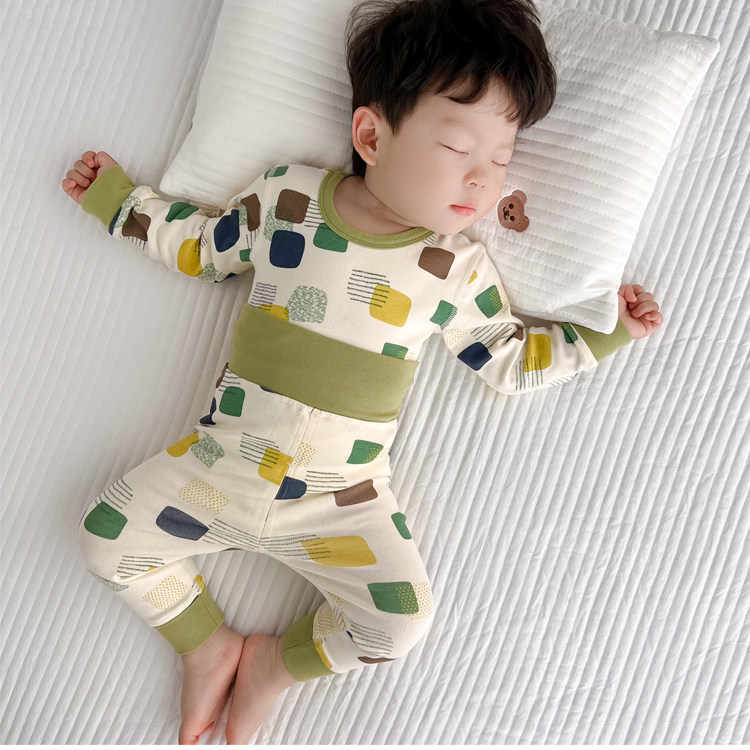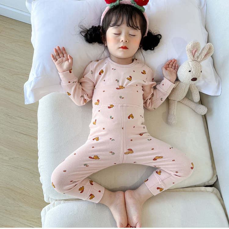 가을과 겨울 어린이 소녀 긴 바지 높은 소년면 가을 옷 따뜻한 잠옷 배 세트 두꺼운 아기 보호 속옷 허리 어린이스토어 가기
