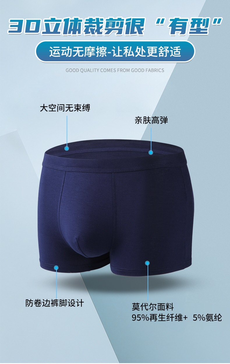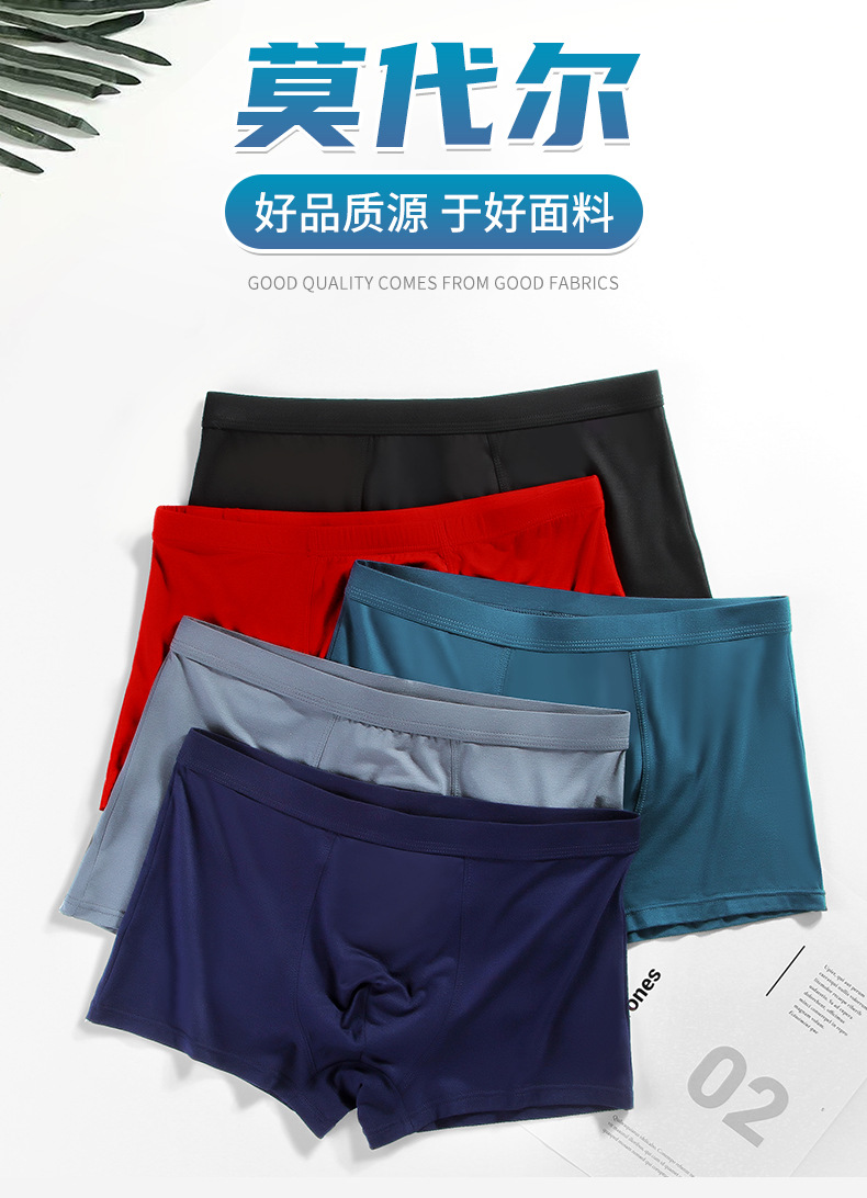 공장 남자의 복서 브리프 모달 높은 탄성 플러스 사이즈 섹시한 단색 소년 원활한 허리 반바지 도매