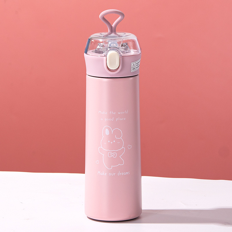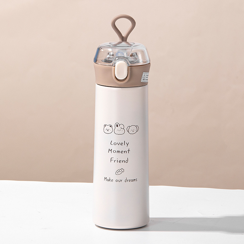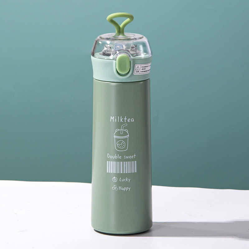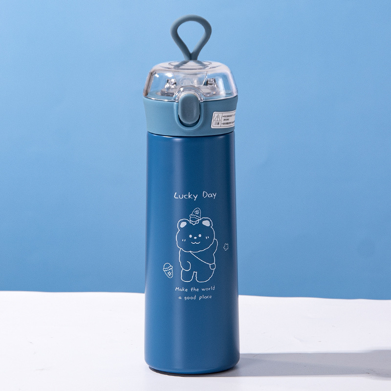 보온병 컵 잠금 버클 뚜껑 밀짚 컵 만화 Yueku 투명 빨대 304 스테인레스 스틸 야외 휴대용 핸디캡 컵