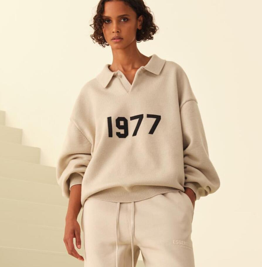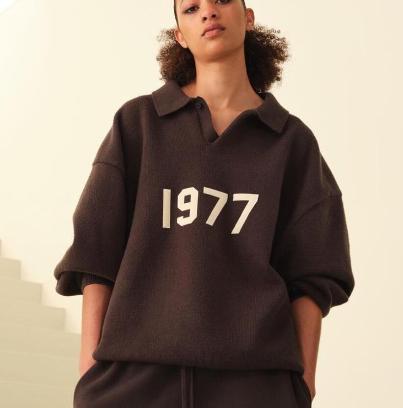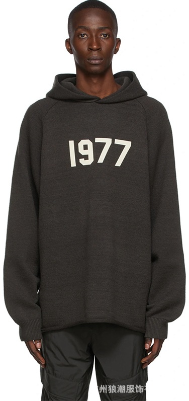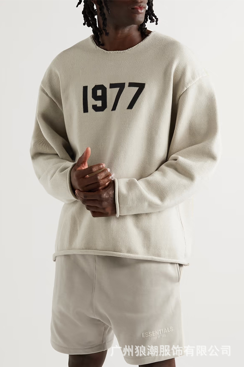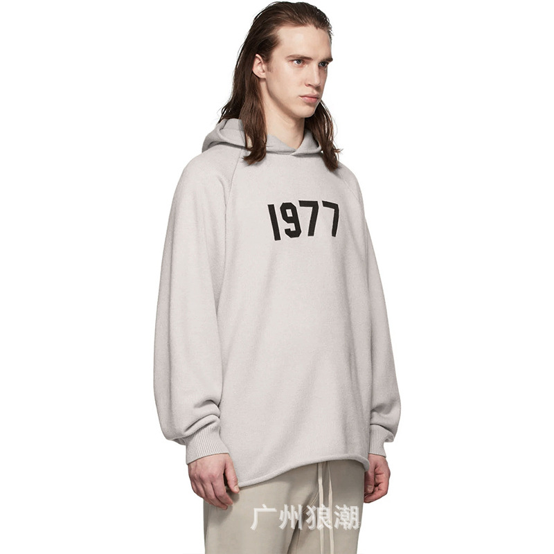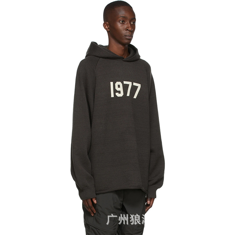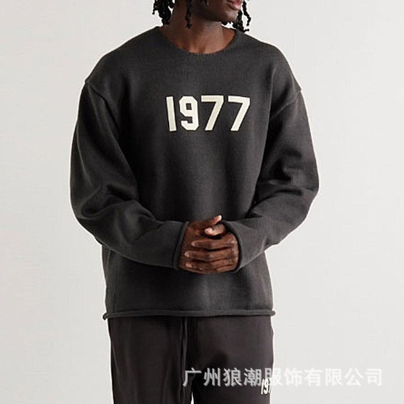 FOG 후드 스웨터 남성과 여성의 1977 디지털 무리 자수 남성과 여성의 느슨한 니트 스웨터 트렌디 더블 라인 커플
