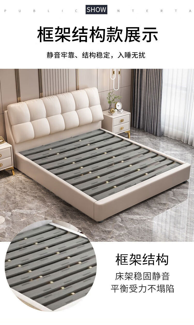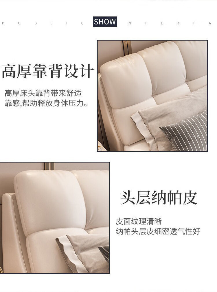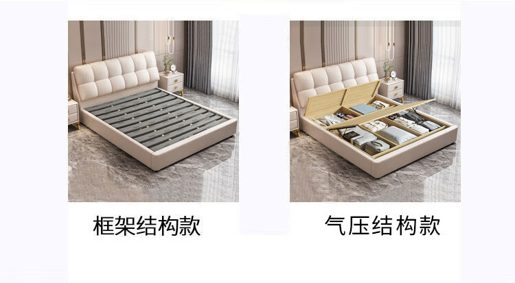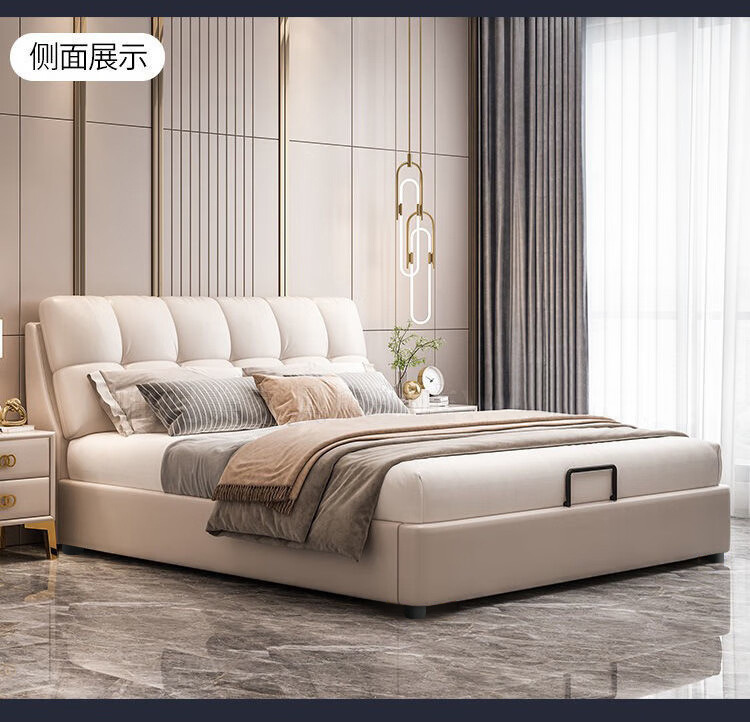 북유럽 가죽 아트 침대 소프트 백 1.8m 다기능 수납 더블 침대 웨딩 침대 침실 라이트 럭셔리 나파 가죽 침대 직접 판매스토어 가기