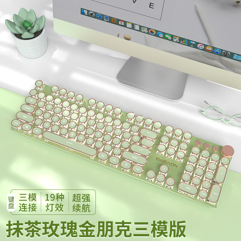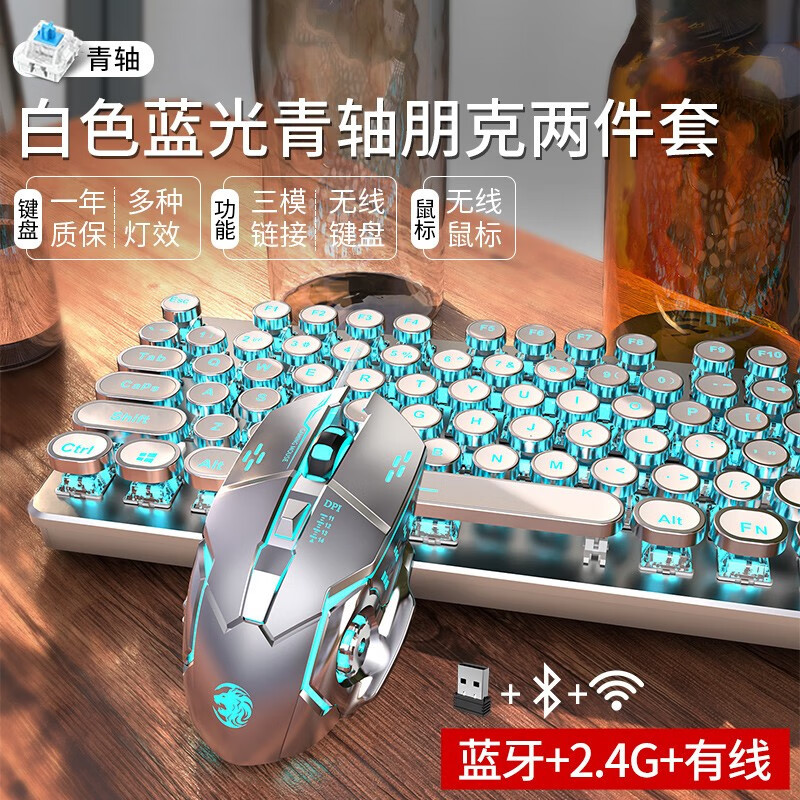 • 흰색 [블루 레이-그린 축] 무선 유선 블루투스 3 모드 펑크 에디션 + 무선 마우스