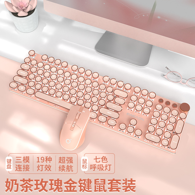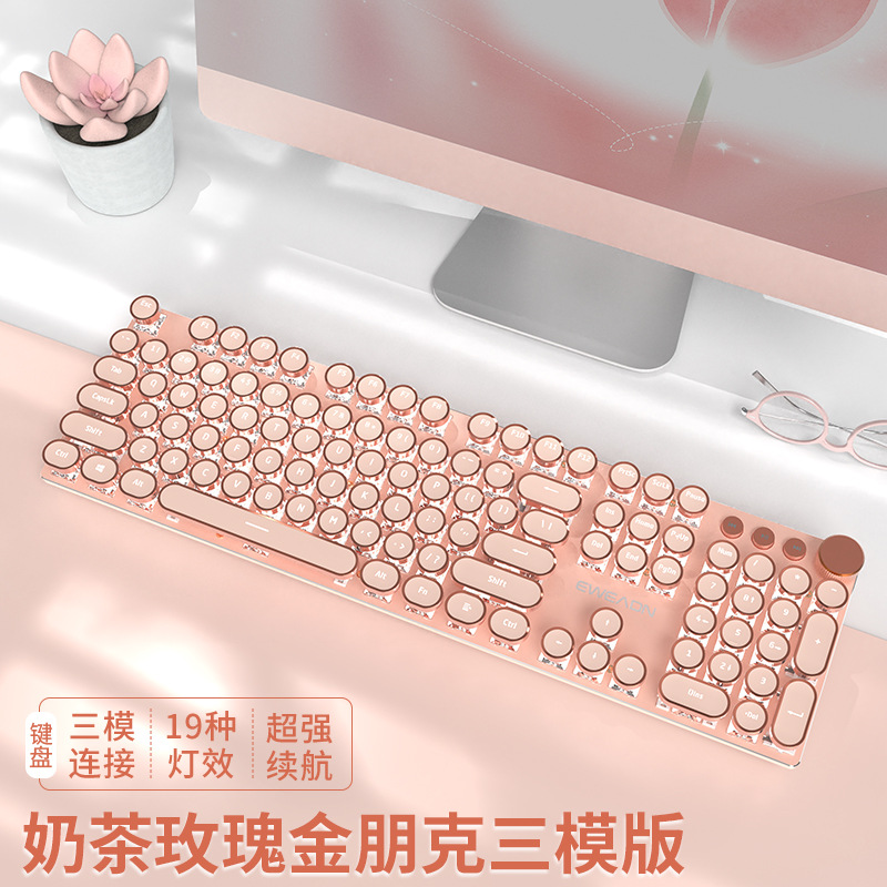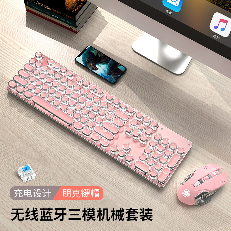• 핑크 [백색광-녹색 축] 3모드 펑크 버전 + 무선 마우스 [업그레이드 버전]