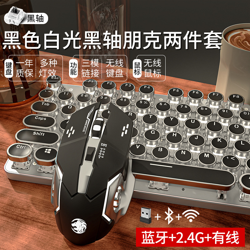 • 블랙 [화이트 라이트 블랙 샤프트] 무선 유선 블루투스 3 모드 펑크 버전 + 무선 마우스