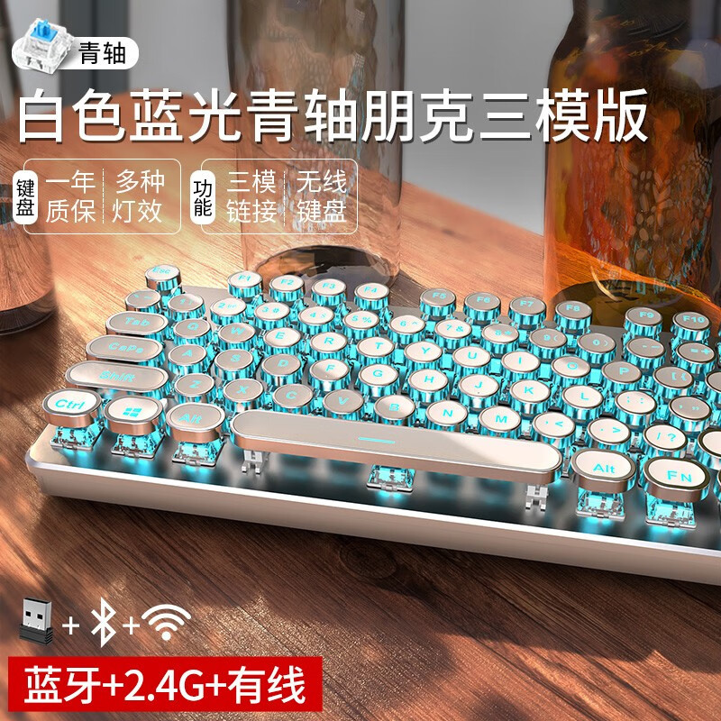 • 화이트 [블루레이-청축] 3모드 펑크 에디션 + 무선 마우스 [업그레이드 버전]