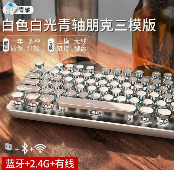 • 화이트 [백색광-청축] 3모드 펑크 에디션 + 무선 마우스 [업그레이드 버전]
