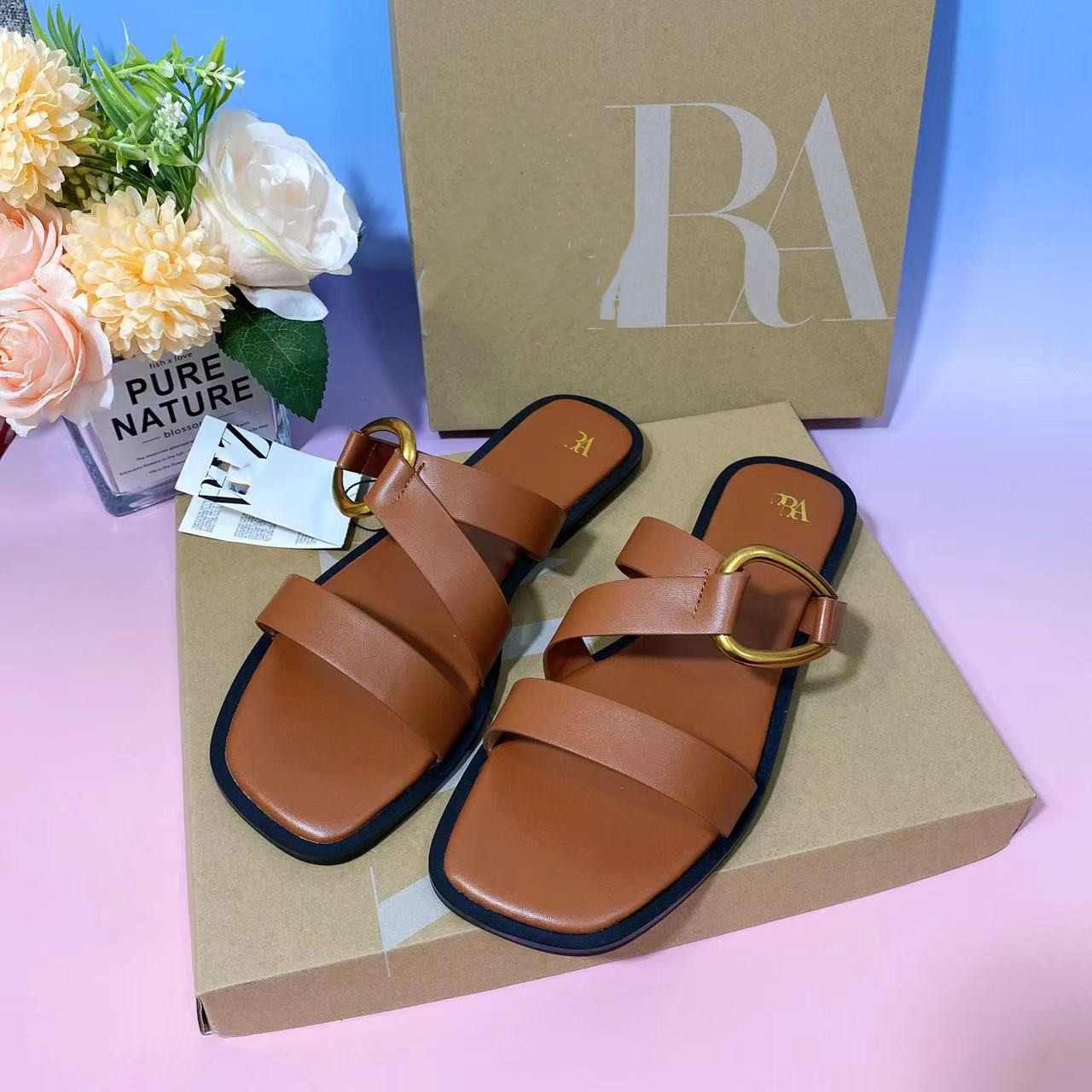 2025 유럽과 미국의 패션 여성 샌들 재고 있음 ZAR 오리지널 하드웨어 다이아몬드 버클 플립 플롭 샌들