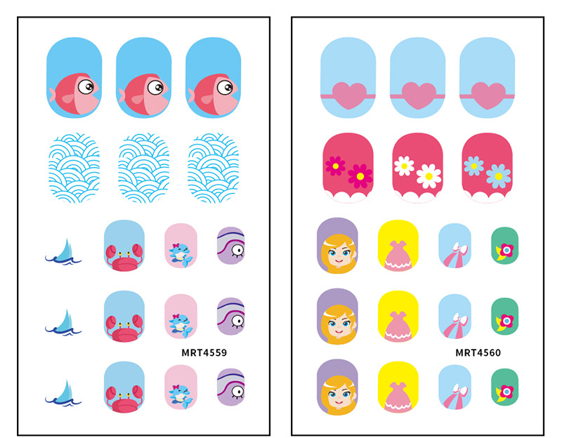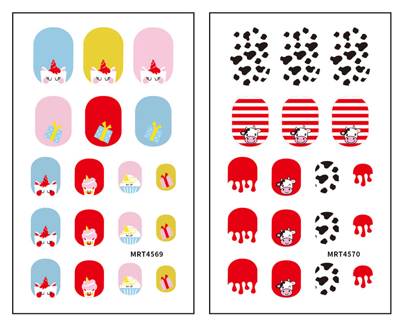 Zhengxiang 어린이 네일 스티커 귀여운 해마 유니콘 어린이 네일 스티커 DIY 작은 악마 만화 네일 스티커