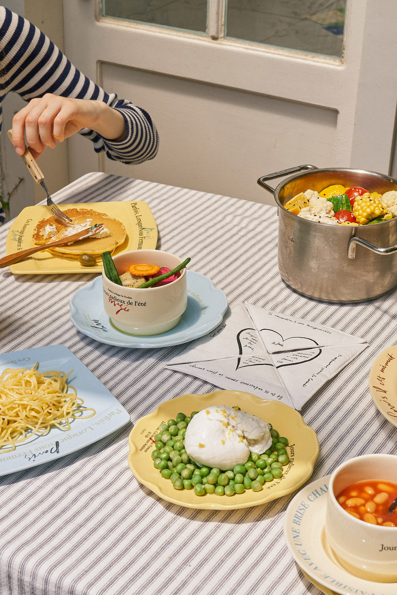 한국 블로거 메인 프렌치 블루 옐로우 스퀘어 플레이트 케이크 디저트 플레이트 토스트 머핀 파스타 스퀘어 플레이트