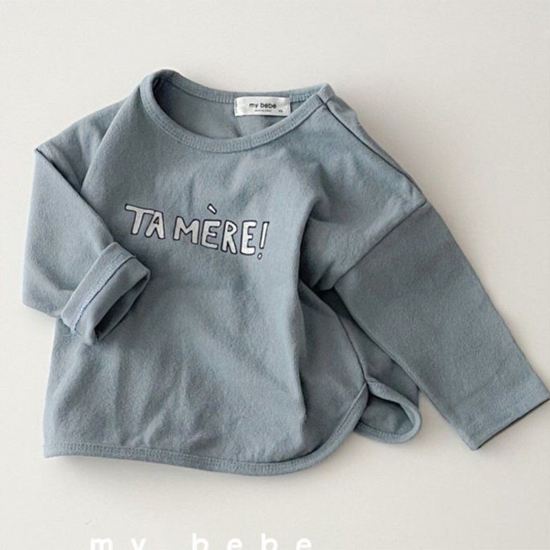 한국 스타일 아기 아동복 심플 웨스턴 스타일 캐주얼 티셔츠 어린이 봄과 가을 편지 라운드 넥 코튼 베이스 셔츠스토어 가기
