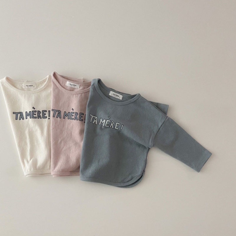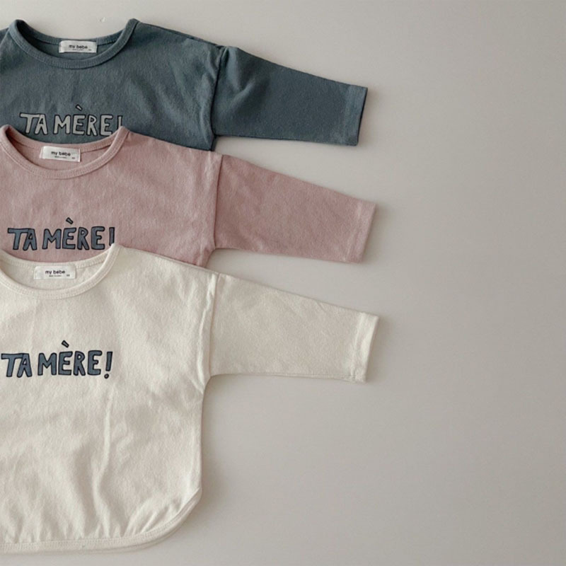 한국 스타일 아기 아동복 심플 웨스턴 스타일 캐주얼 티셔츠 어린이 봄과 가을 편지 라운드 넥 코튼 베이스 셔츠