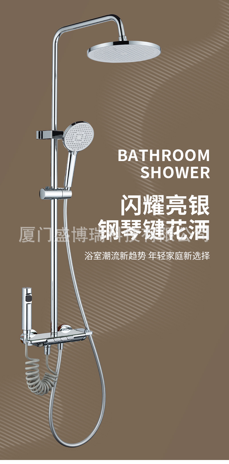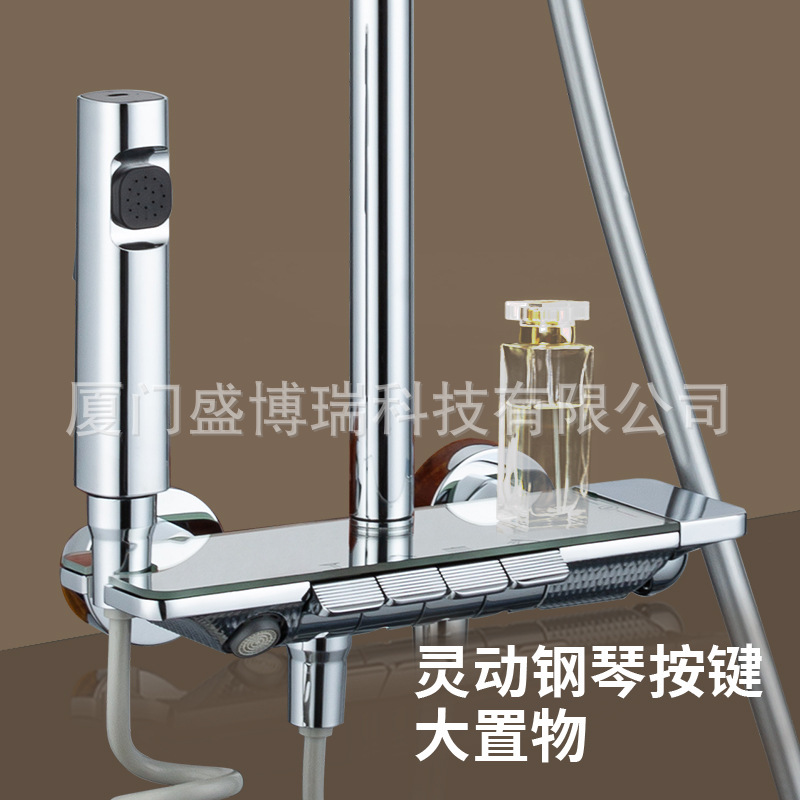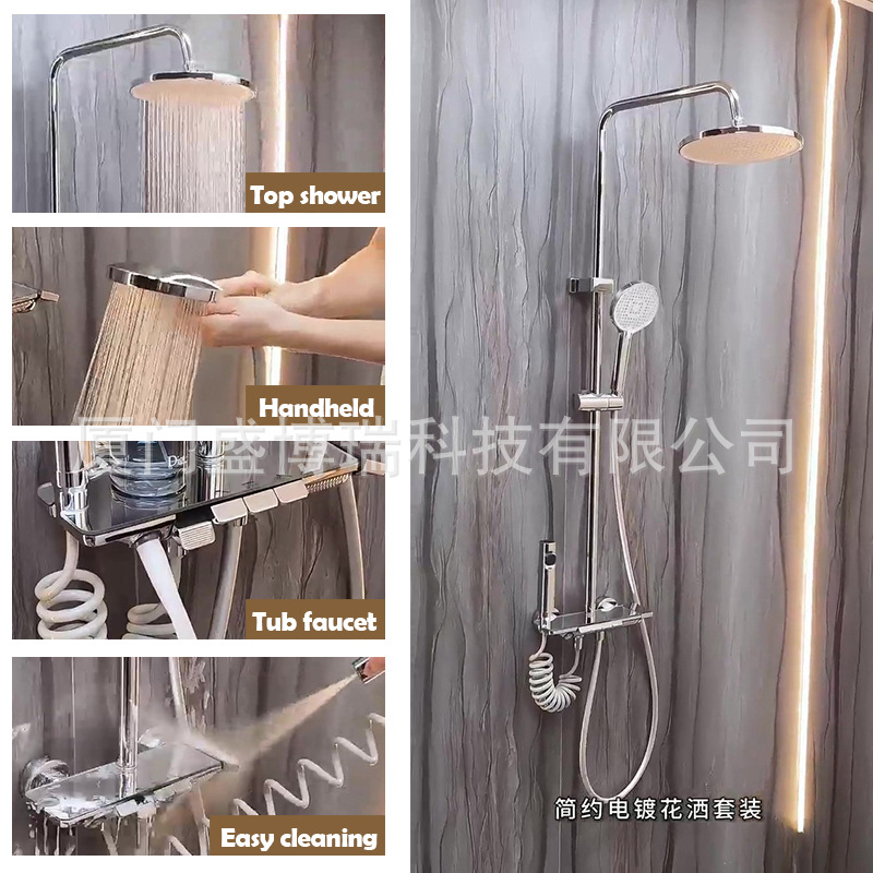 샤먼 욕실용 전기도금 가압 샤워기 세트 가정용 피아노 버튼식 레인 샤워기 세트