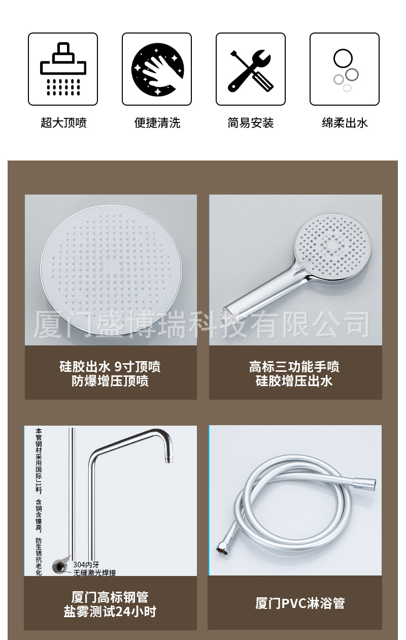 샤먼 욕실용 전기도금 가압 샤워기 세트 가정용 피아노 버튼식 레인 샤워기 세트스토어 가기